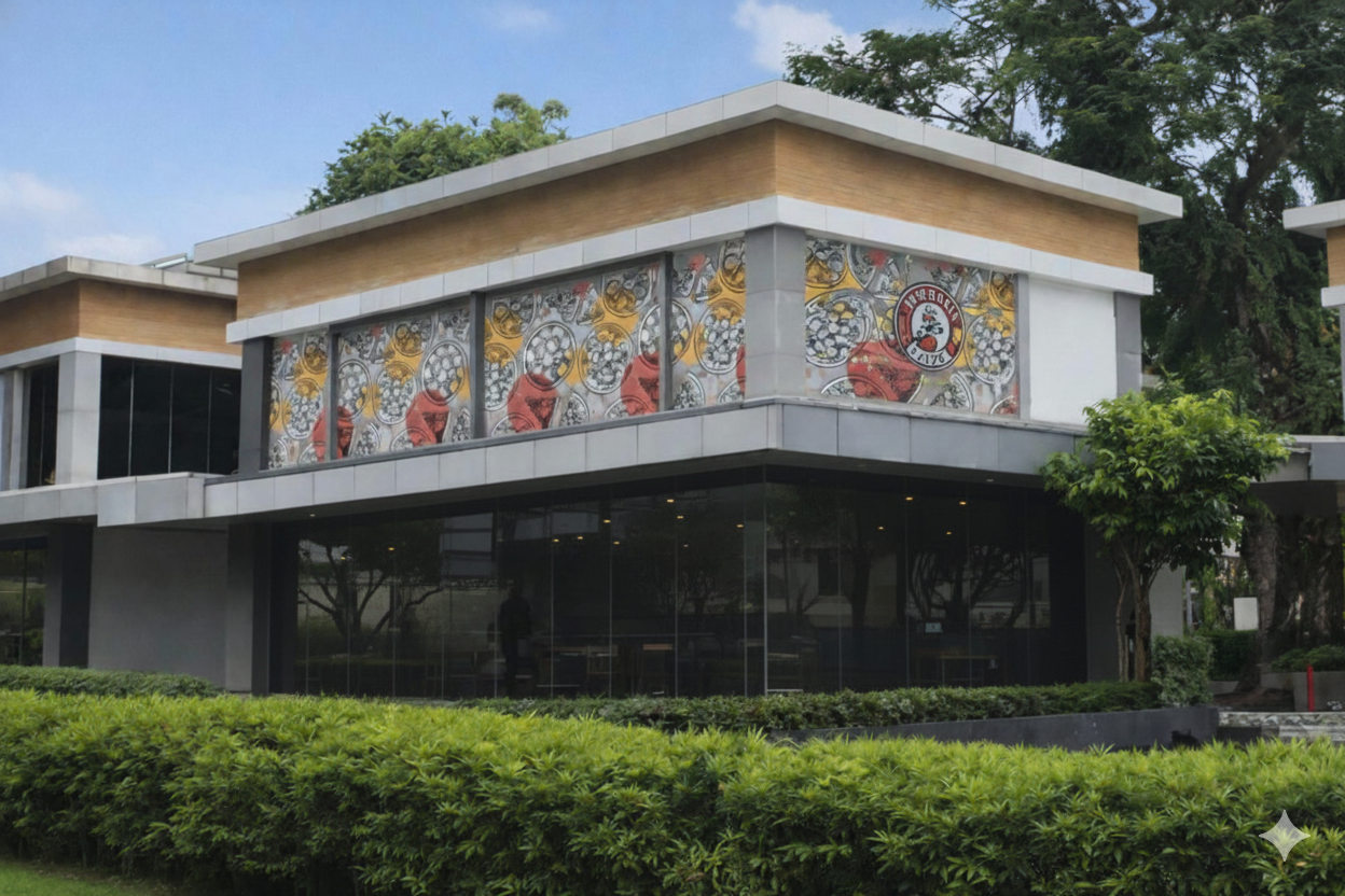 change the interior of the restaurant it has to be consistent to the view of the interior of firehouse pizza restaurant in the second picture reference