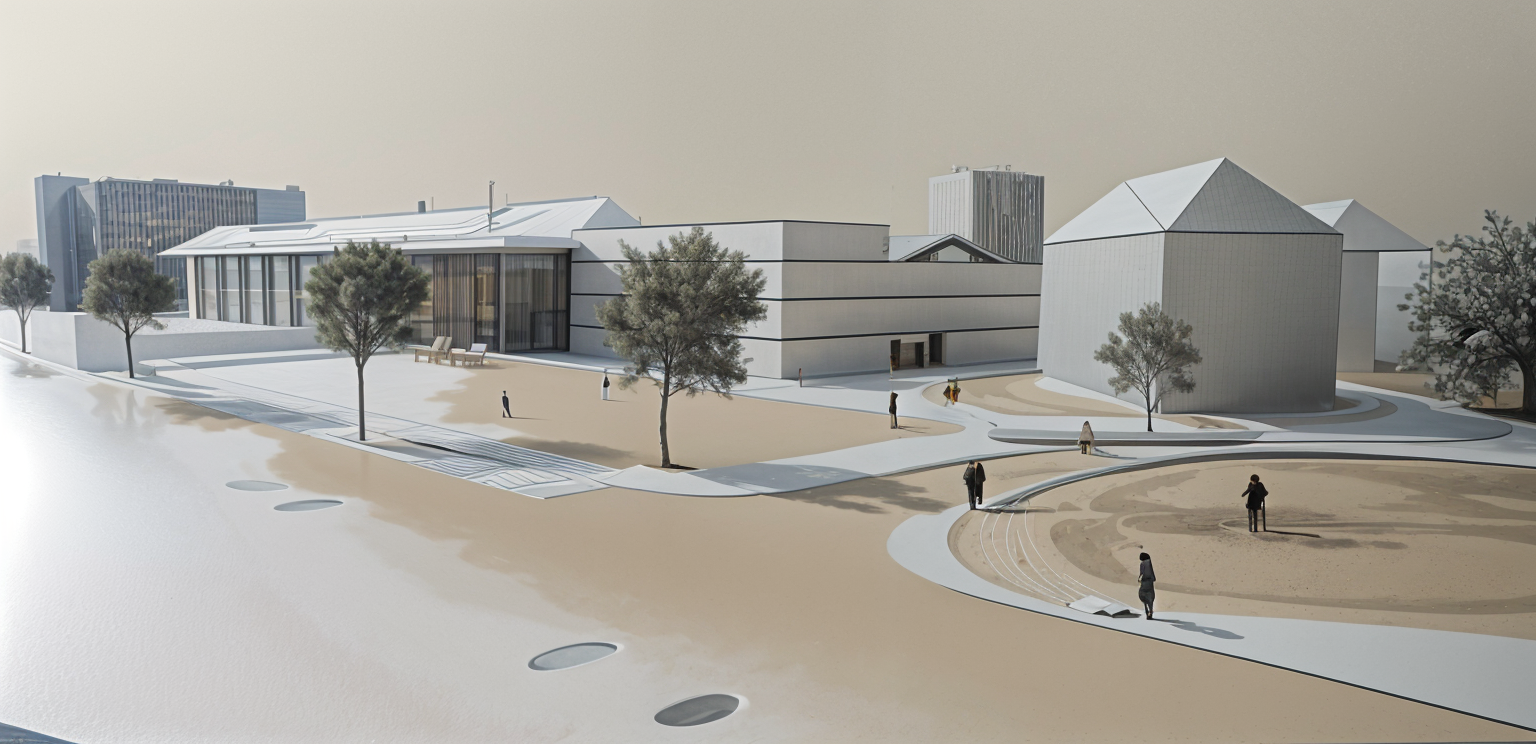 time of the day is 4 hours before sunset add some realistic people in front place curtains behind the windows replace cars with realistic cars in different colours remove some cars add some trees in front point sun on other facade less cars