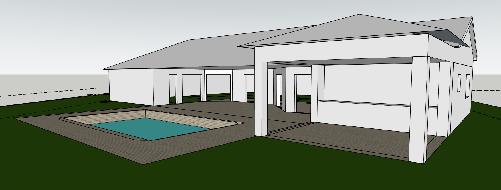 create a hyper realistic exterior photograph of a modern house exterior during a vibrant sunny day the house has white painted walls dark gray metal roof windows reflect the clear blue sky palm trees with their lush green fronds add a tropical touch the house has surrounding green lawn the atmosphere is tranquil and luxurious with sunlight casting gentle shadows evoking a sense of relaxation and opulence