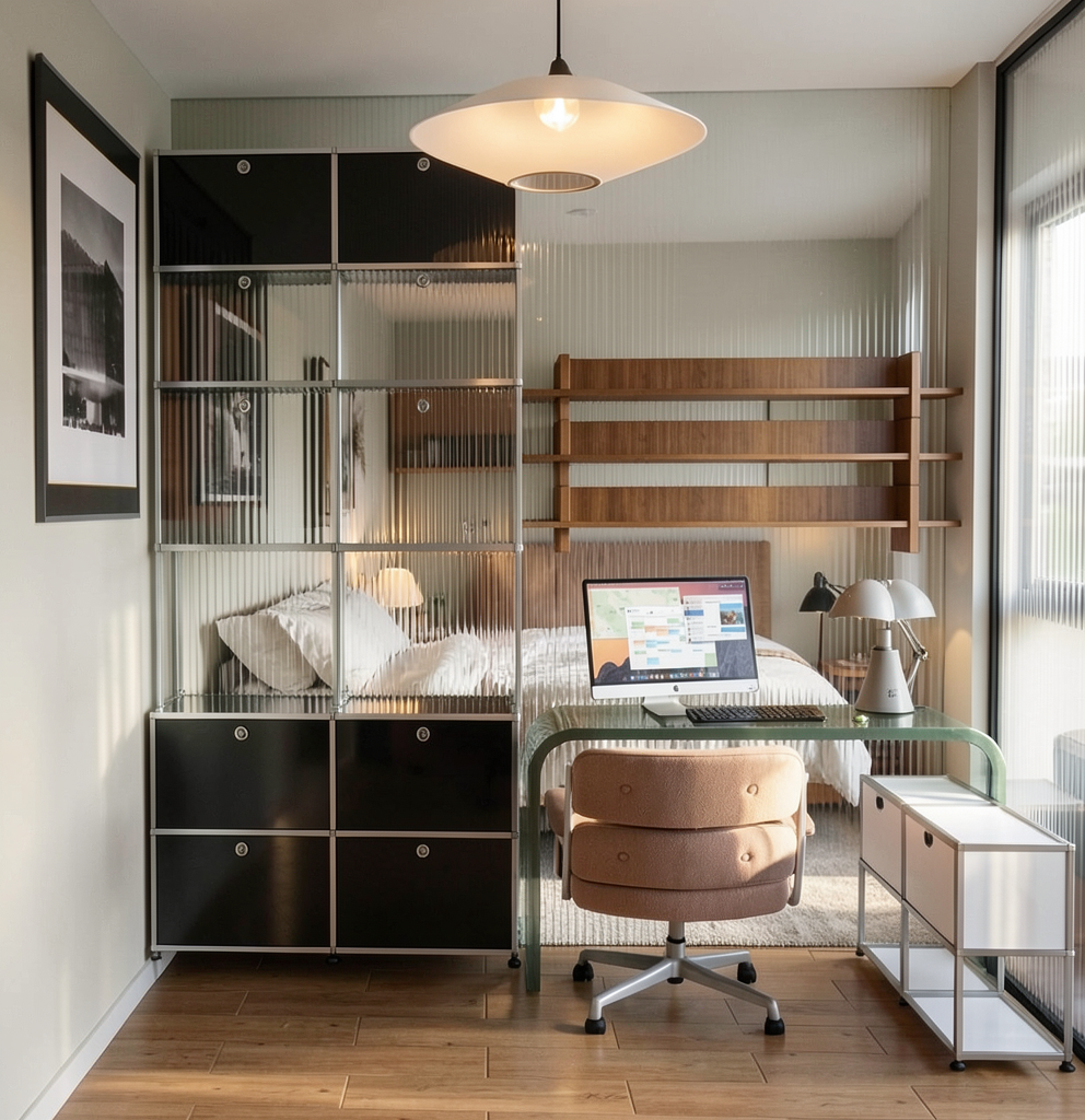 add few birds on the sky and male left door glass middle of the sunny day no trees matte road remove glass in the middle door