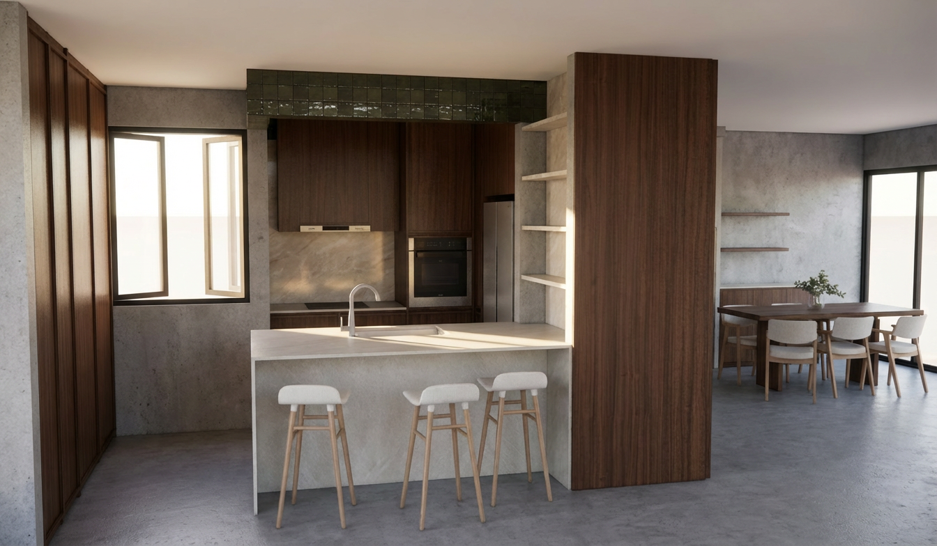 otorealistic architectural render of a luxury boutique storefront inserted into an existing streetscape at 170 oxford street paddington sydney the surrounding context remains unchanged neighbouring shops with glass fa ades signage and urban street elements such as trees parked cars and pedestrians the redesigned storefront is minimalist and gallery like featuring deep matte red exterior walls a recessed entry and a striking vertical timber panel with a dark herringbone grain finish a floating concrete canopy extends outward above the entrance creating strong shadow lines and a sense of exclusivity the fa ade is intentionally introverted compared to neighbouring stores with a small precise display window embedded within the red wall interior glimpses are limited creating a sense of mystery and invitation lighting is soft natural daylight typical of sydney with dappled shadows from street trees materials are highly realistic matte painted render textured timber smooth concrete subtle reflections in glass maintain realistic proportions based on the existing building in the image style high end architectural visualization cinematic slightly moody atmosphere camera angle eye level slight perspective not flat elevation quality ultra realistic 4k v ray unreal engine style rendering
