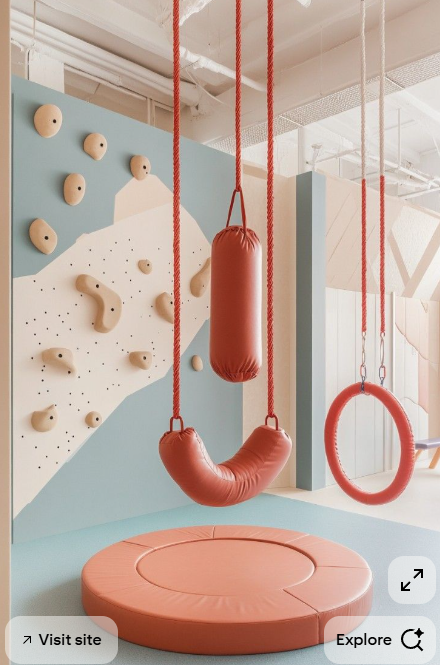 interior shot instalations for playing for kids big balls in the back used for pushing and playing