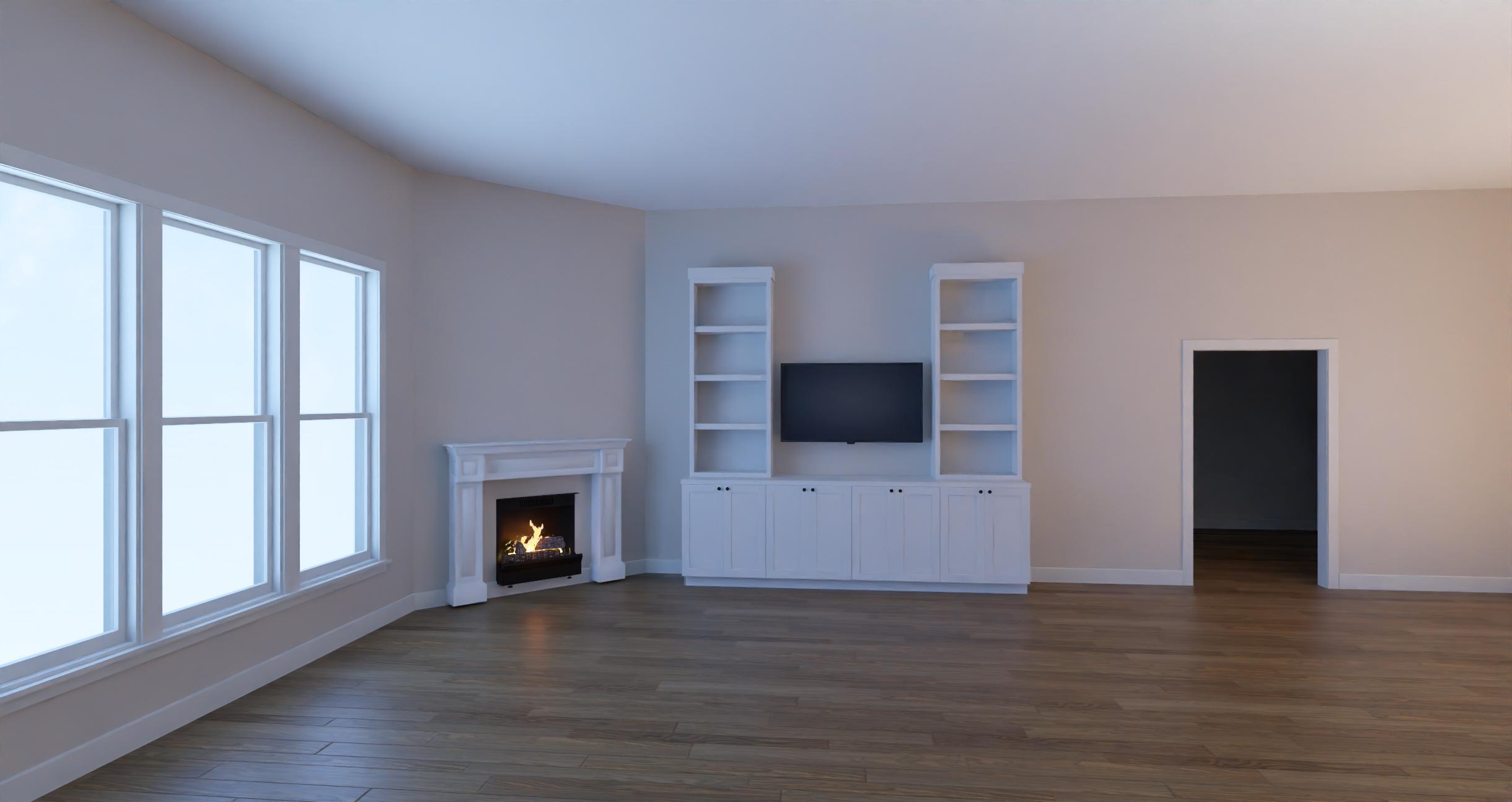 exterior shot change fireplace mantle to similar to attached rendering