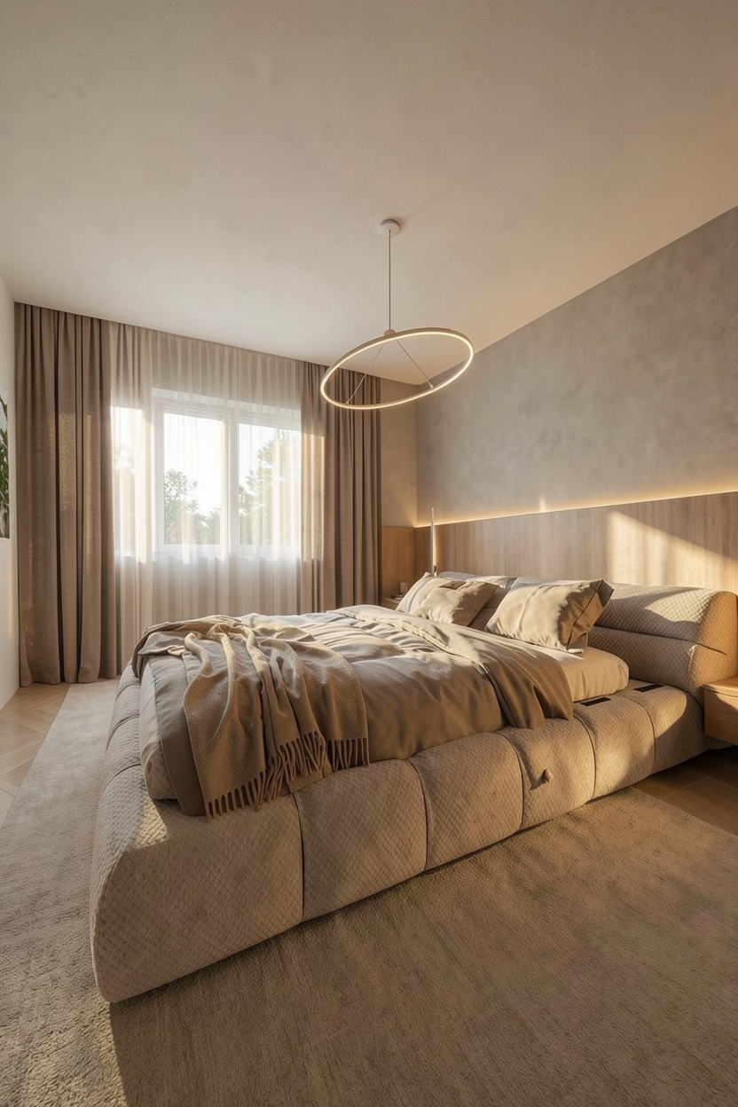 minimalism interior shot functional workspace calm productivity modern minimalist office zen japandi office lobby interior inside an industrial container size 4 1 x 2 3 meters ceiling height 2 3 meters calm but functional workspace with a serene spa like atmosphere light beech wood slatted floor continuing onto the back wall narrow vertical slats matte natural finish side walls finished in warm sand or clay toned microcement soft handcrafted texture no grey tones ceiling with a delicate beech wood grid and white natural jute panels softly backlit with hidden warm led lighting 2700k stopsol bronze tinted glass entrance framed in light beech wood minimalist beech wood desk with an ergonomic fabric office chair in beige tones integrated coffee corner with a built in beech wood cabinet minimalist espresso machine ceramic cups in earthy tones natural linen rug subtle textiles living plants including a bonsai or small indoor tree hotel lobby meets modern office japandi zen style earthy natural spa mood soft indirect lighting peaceful yet productive atmosphere high end architectural visualization ultra realistic cinematic lighting architecture