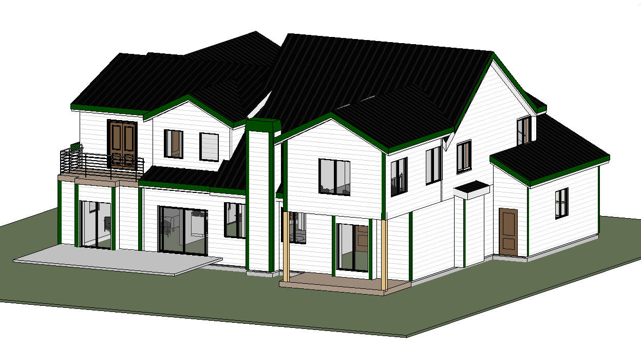 add a backround add some trees and shrubs and grass to cover the green floor make it look realistic make the roofing material asphalt shingles