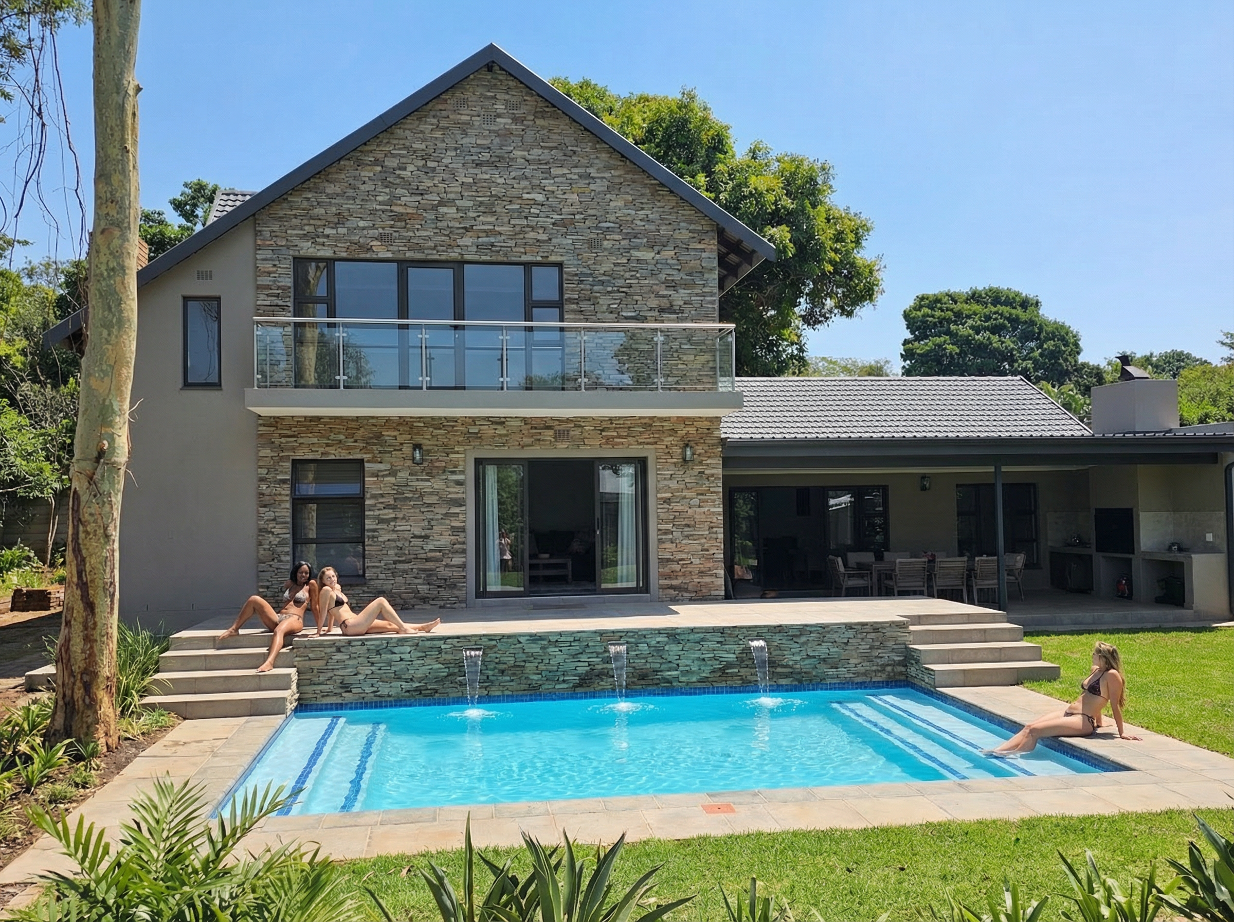 remove the water tanks modernize the elevations install a charcoal roof and add a new pool at natural ground level with spouts that flow into the pool add a new aluminium sliding door to the ground floor centered on the balcony stainless steel balustrades to top balcony no balustrades on the ground floor 3x5m rectangular pool to have 1 5m wide stairs on either side to ground level clad the patio wall with stone cladding and show grass and landscaping remove the people and left door add a covered entertainment area at the ground floor level to the right of the pool omit the door on the ground floor to the left of the pool the entertainment patio roof is full length of the original roof