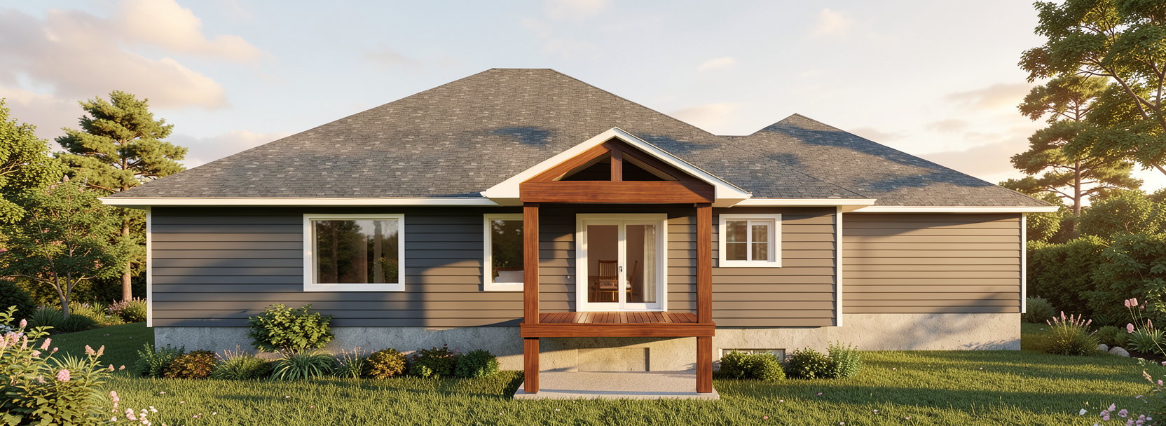 create a realistic rendering of this room adding details and furnishings vegetation inside the glass greenhouse and people keep the project as it appears in the original image