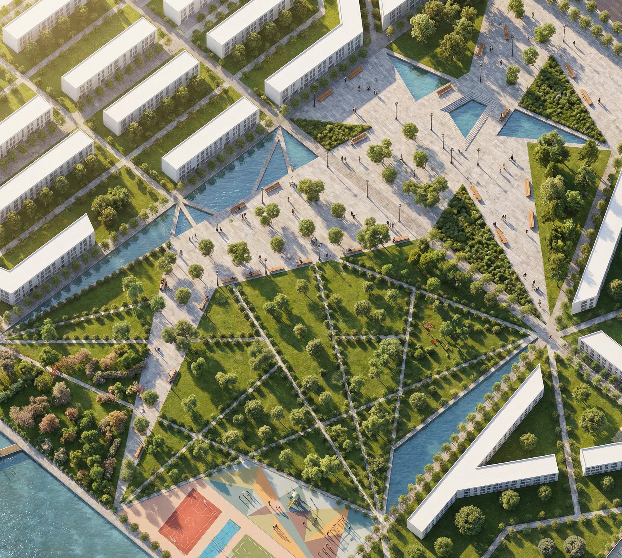 make the benches smaller in width and the buildings higher keep the rest the same