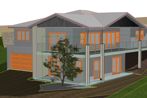 zaha hadid exterior shot render with modern coastal finishes sandstone columns ground floor white render upper floor vertical white cladding glass balustrade with timber slatting white to gable opening architecture