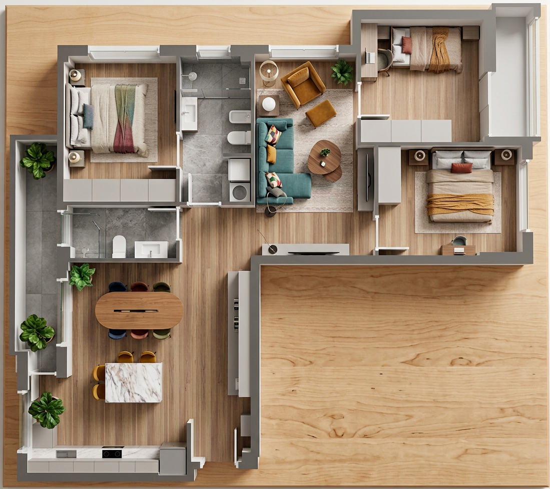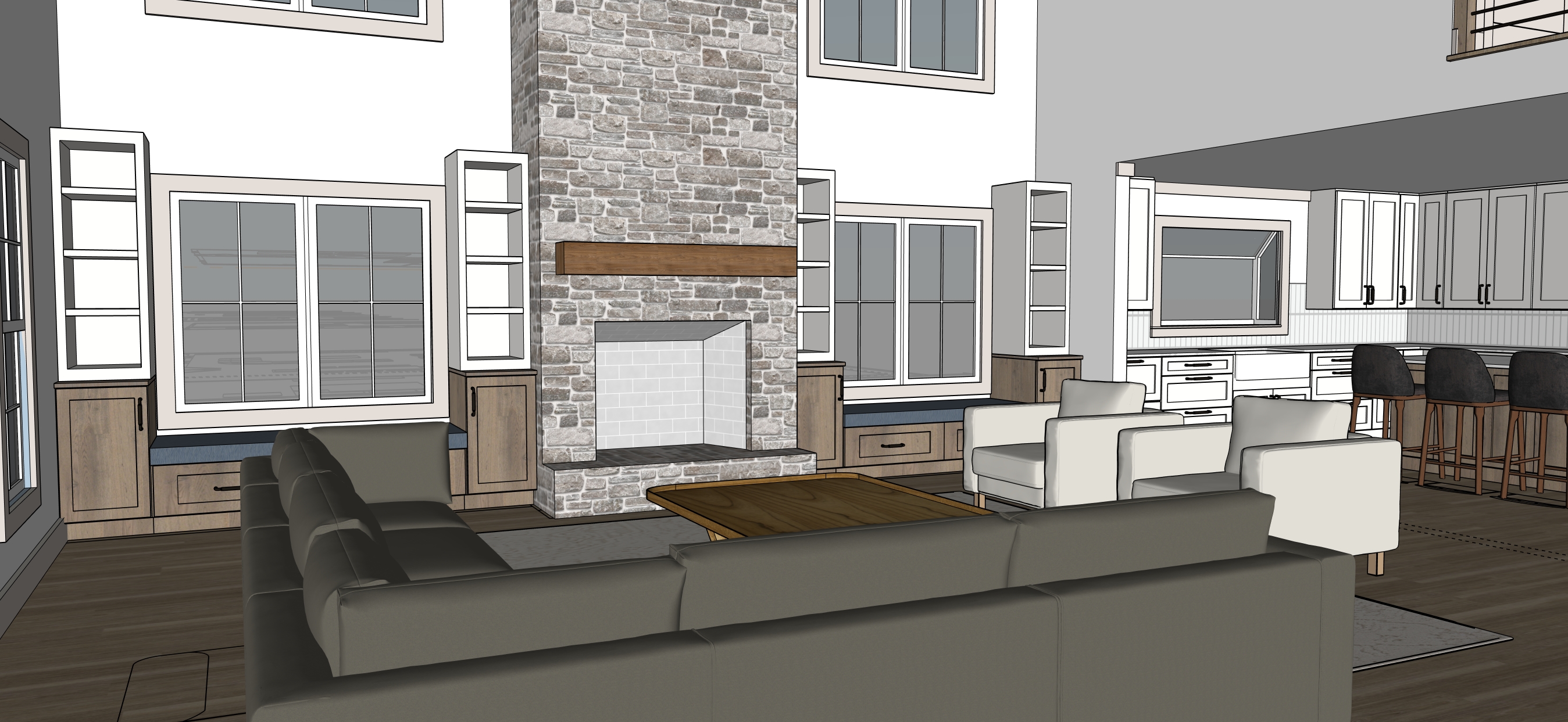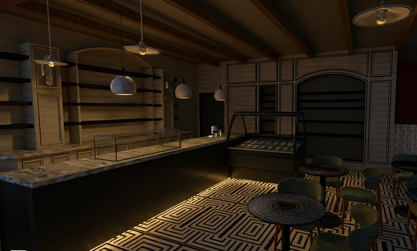 trees in background outside windows make realistic add ceiling lighting add decor