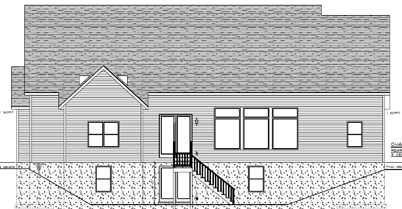 make as photorealistic as possible while keeping textures the same as selection professional landscaping in a lightly wooded scene with good lighting dark grey horizontal siding black gutters black trim the concrete foundation will be light grey black windows black roof shingles black doors