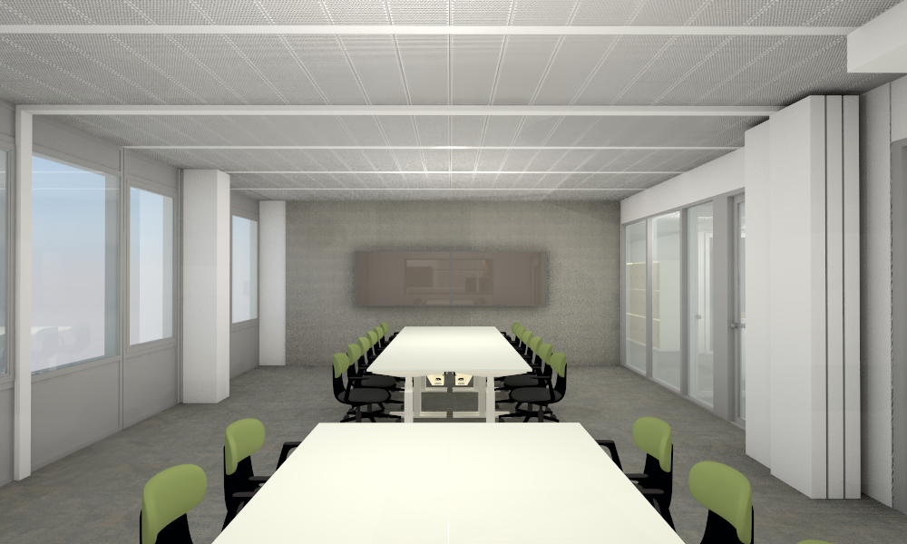 transform the provided office interior image into a high end photorealistic render with naturalistic atmosphere while keeping everything exactly the same position same proportions same seating same ceiling curves same wall finishes same floor finishes same materials same colors and same spatial configuration do not move or alter any objects geometry textures colors or furniture positions no shiny materials