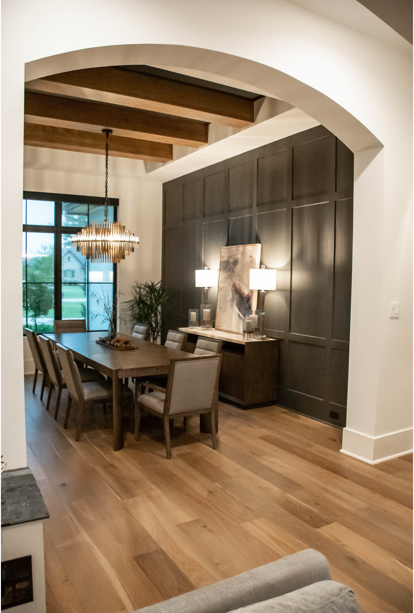 add a rug hang art above the buffet