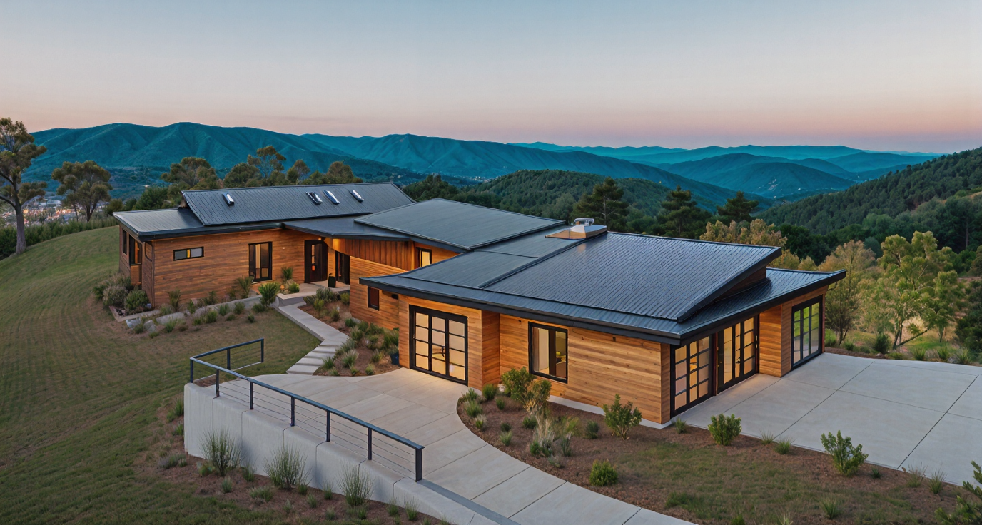 water color rendering shed roofs landscaping with shrubs and trees architecture