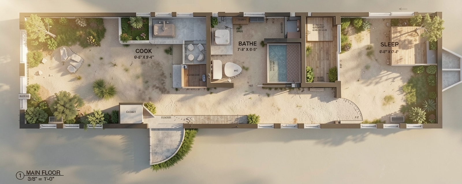 colourize the exterior of the building in a light timeless colour combination keep shingles as shown and add a manicured lawn layered flower beds low maintenance shrubs native plants stone pathway leading to the entrance while keeping low maintenance
