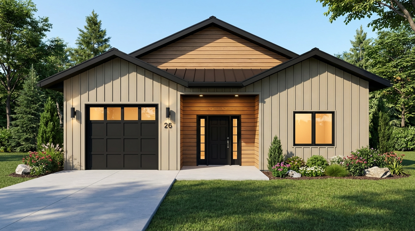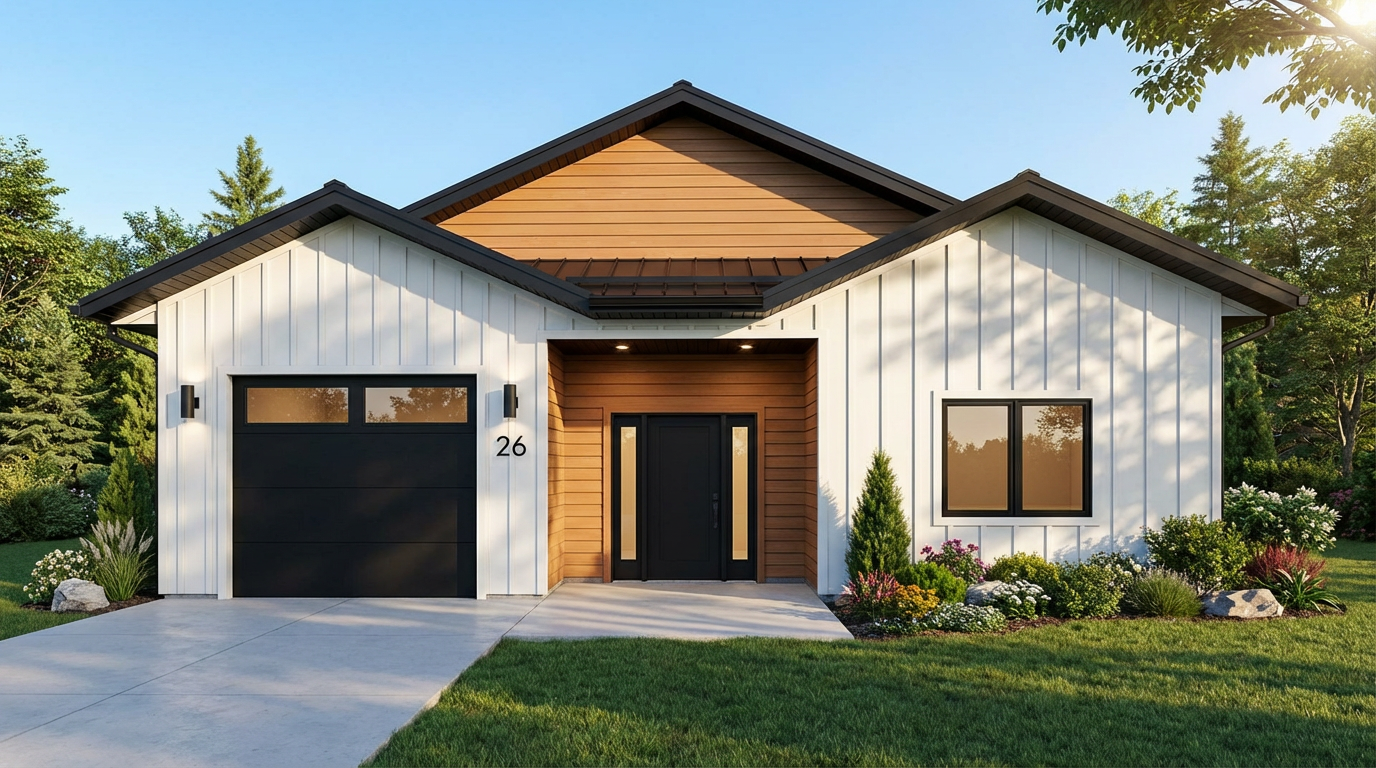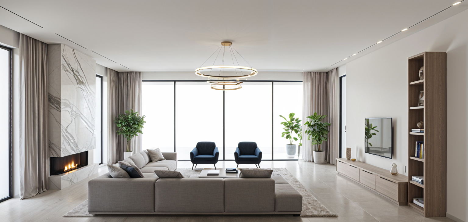 modern minimalist interior space expansive gym with high arched ceilings soft warm illumination gently washing over the curvature warm wood tones creating a cozy atmosphere sleek black framed windows lining the walls light gray smooth flooring reflecting the ambient light an inviting peaceful atmosphere with a blend of contemporary elegance and natural warmth soft daylight filtering through the windows overlooking the golf club keep all design elements and materials enhance lighting