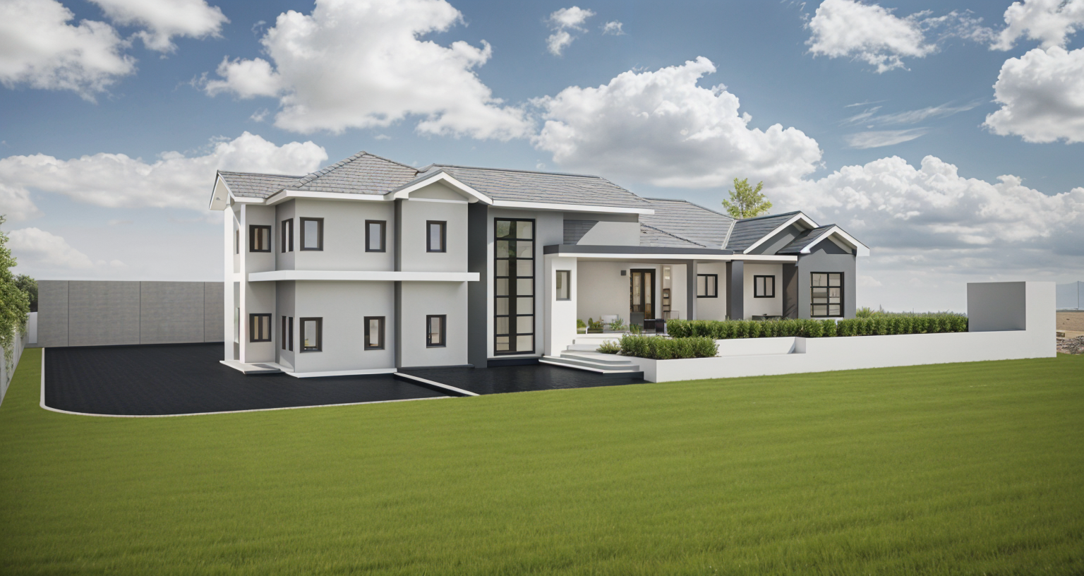 new urbanism exterior shot replace background image to be a suburb neighborhood with fences between yards architecture