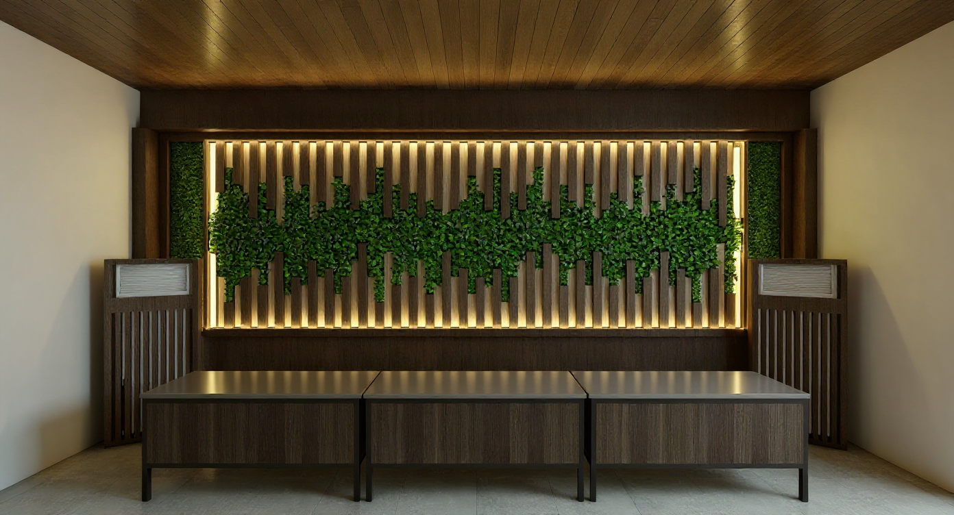 a sofa two lounge chairs a low round coffee table soft rug underneath a statement pendant big green monstera plant a big wall art modern relaxed atmosphere
