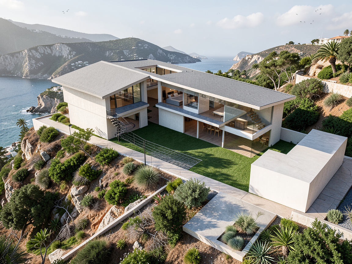 change the blue color of the facade and interior into dark brown wood put more led light as decor