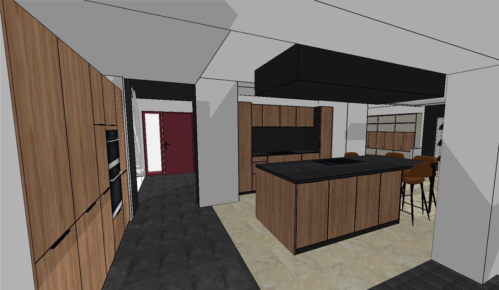 mettre 6 sopts sous la casquette noir et un peu de deco garez la couleur bois sur ilot et le reste noir