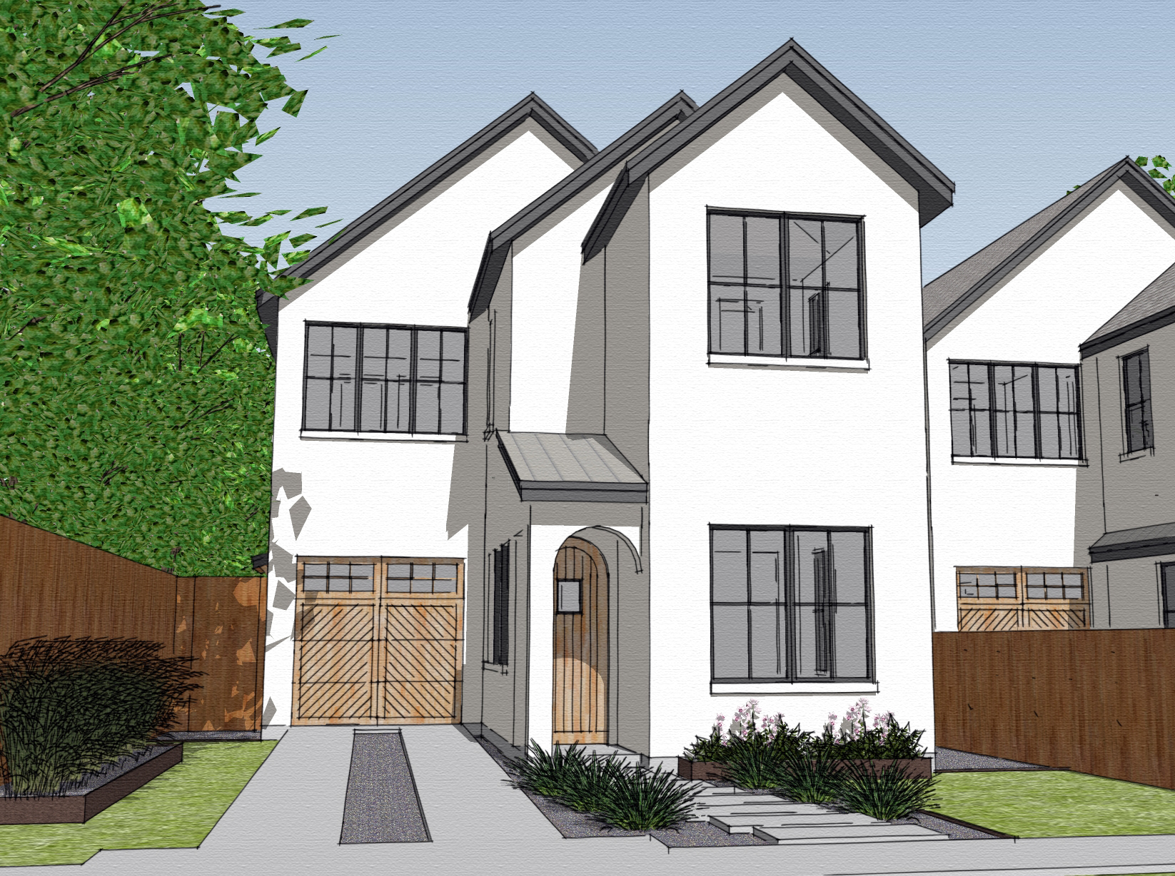 make this sketch a presentation quality rendering with landscaping lighting and improved textures