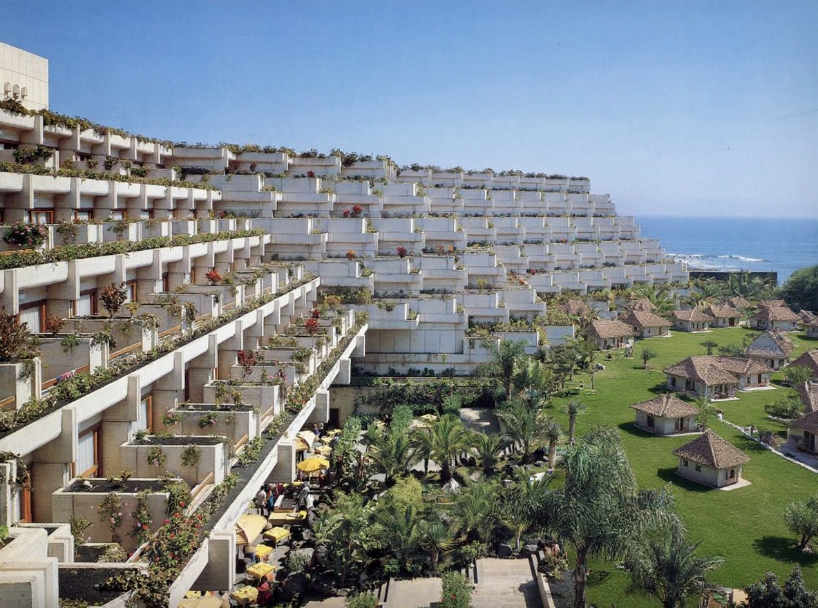 show this house that is under construction as a completed projects with a flat lawn to the right of pool and limestone paving between pool and house pool and landscape to have a california romantica and slim aarons aesthetic render to house to be warm white subtle hints of interior lighting