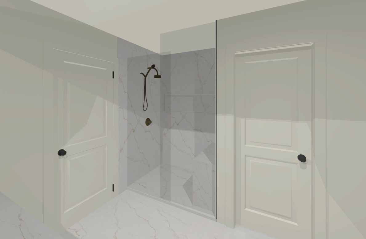 bright and luxurious bathroom enhance gold fixtures add toe kick lighting to niche in shower