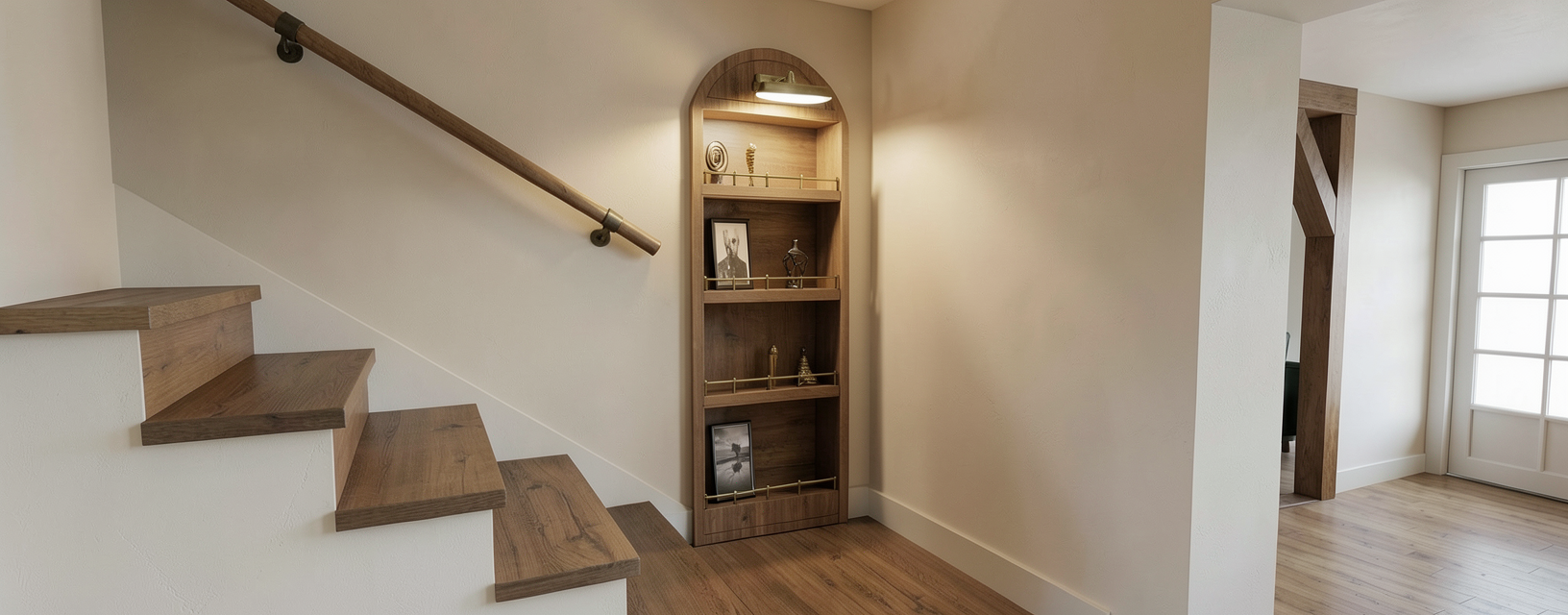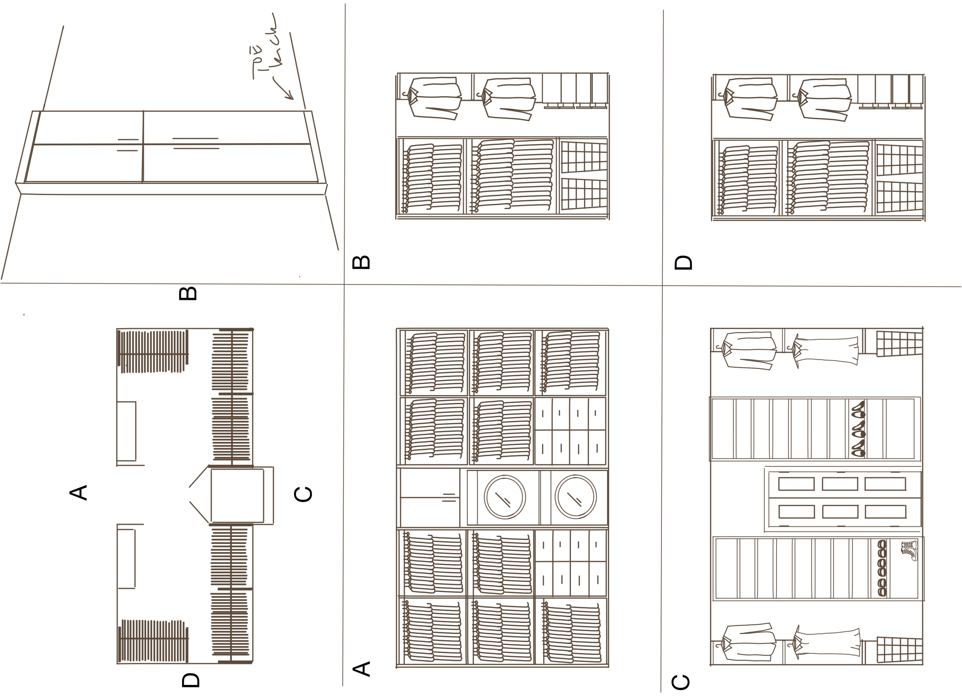 stitch these images together to create a 3d model of this closet grey carpet urban bronze from sherwin williams as the cabinet color fill it with clothers and shoes