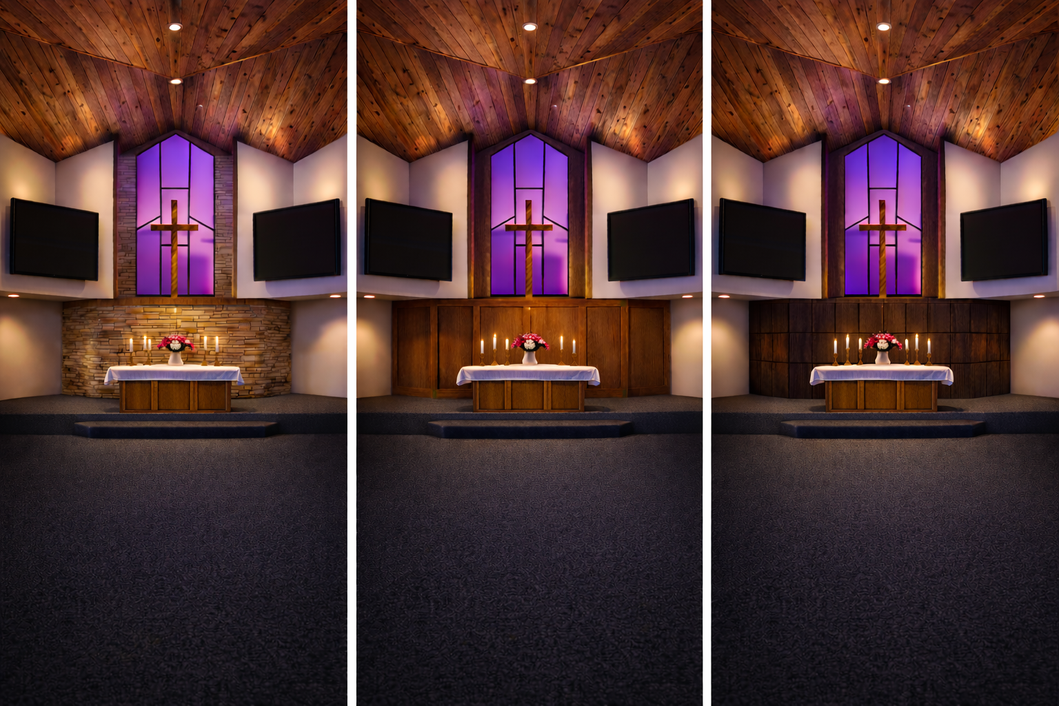 the floor should be carpet and the stain glass should be purple