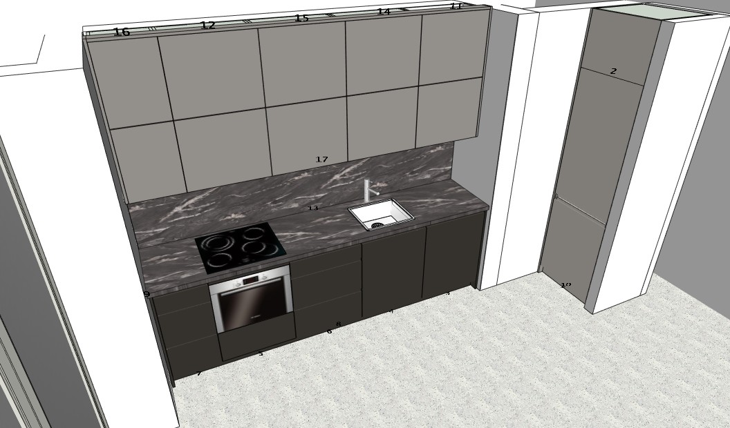 blat pomiedzy szafkami zrob z kwarcytu negresco pod oga pod kuchnia to p ytka pietrasanta dolne szafki pod blatem zr b w kolorze ncs 5502 y g rne szafki oraz szafke z prawej strony z lod wk zr b w kolorze ncs 2000n