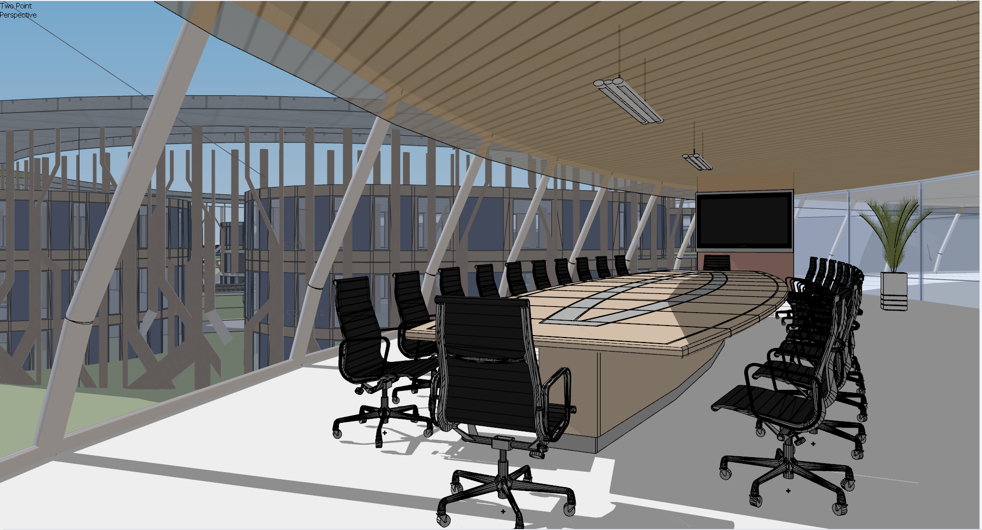 futurism interior shot high tech office in an startup modern office building some people sitting by the conference table some plants on the floor architecture