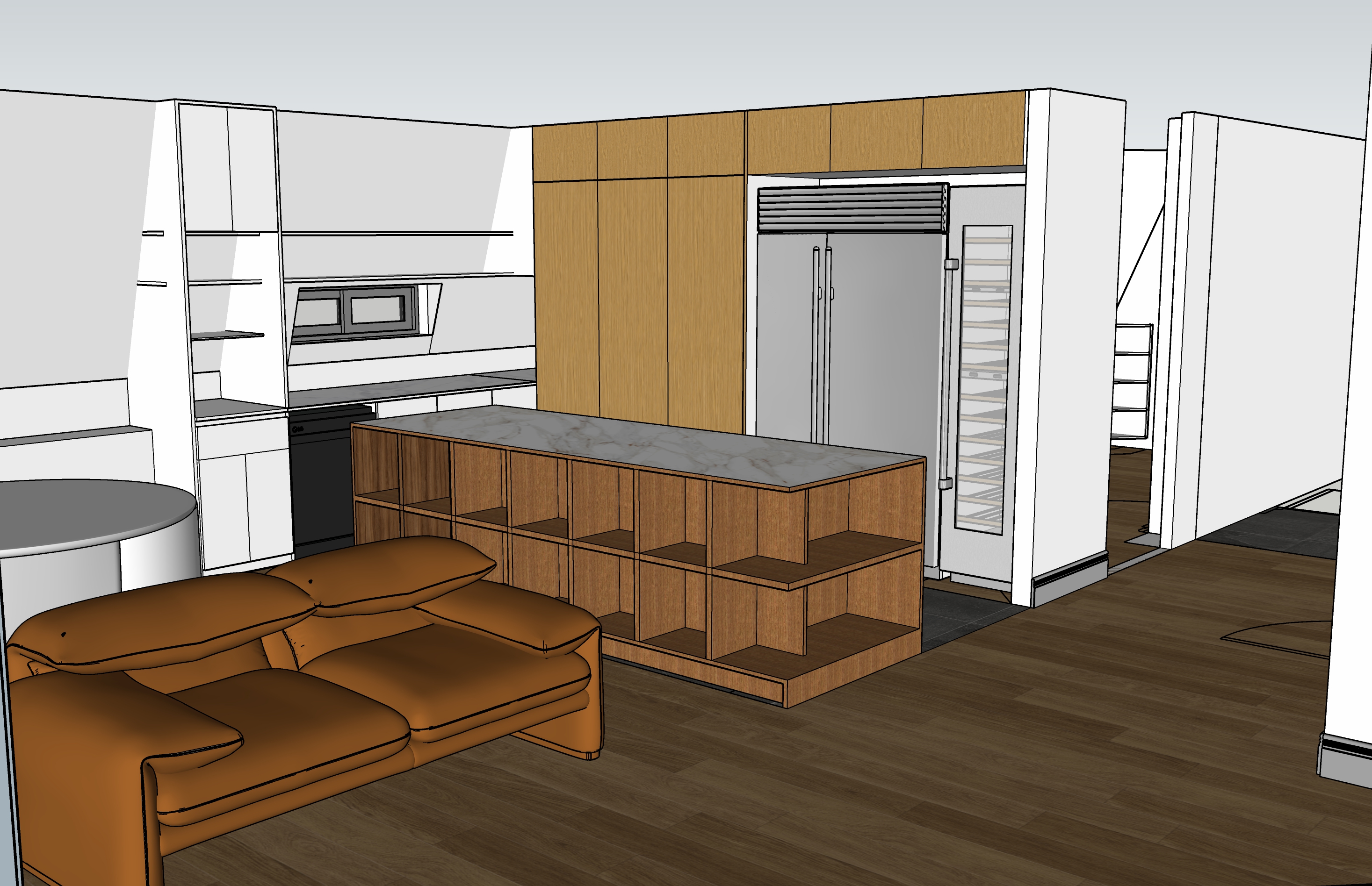 warm white kitchen with a light white oak kitchen cabinets stainless steel appliances marble countertops on a sunny day