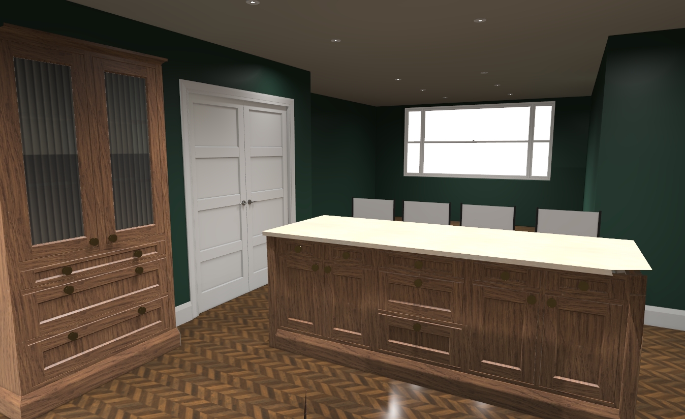 accesorise the room with contemporary items sofa and lamps to main area lighting iside ribbed cuboard and pandants over the island