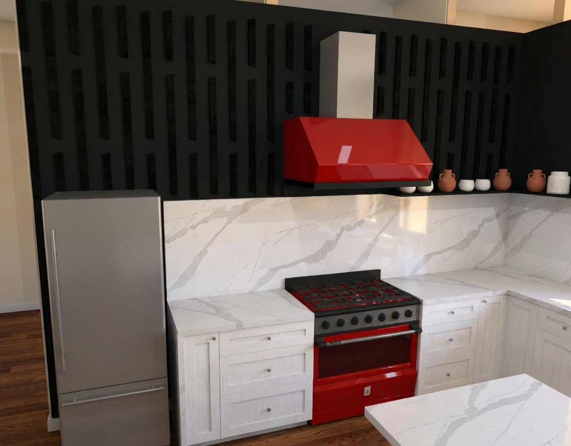photorealistic enhancement of the provided architectural render preserve the exact architecture layout materials furniture placement and fixtures from the original image with no redesign or modifications the purpose is only to improve realism and lighting quality render as high end interior photography using a full frame camera with a 24 35mm architectural lens balanced exposure realistic dynamic range subtle depth of field and natural color grading the image should look like a professionally photographed luxury interior rather than a computer render soft natural daylight diffused window light global illumination balanced exposure do not change architecture do not change materials no redesign no new objects no additional lights no glowing fixtures no light from shower heads or faucets no dramatic shadows no surreal lighting no warped geometry no stylization the windows looking out to the exterior should be displaying mountains in the distance some trees please include contemporary bedroom furniture that includes a king bed two nightstands and a dark area rug there should be a sconce above each nightstand the furniture style should resemble restoration hardware please include wood beams on the ceiling