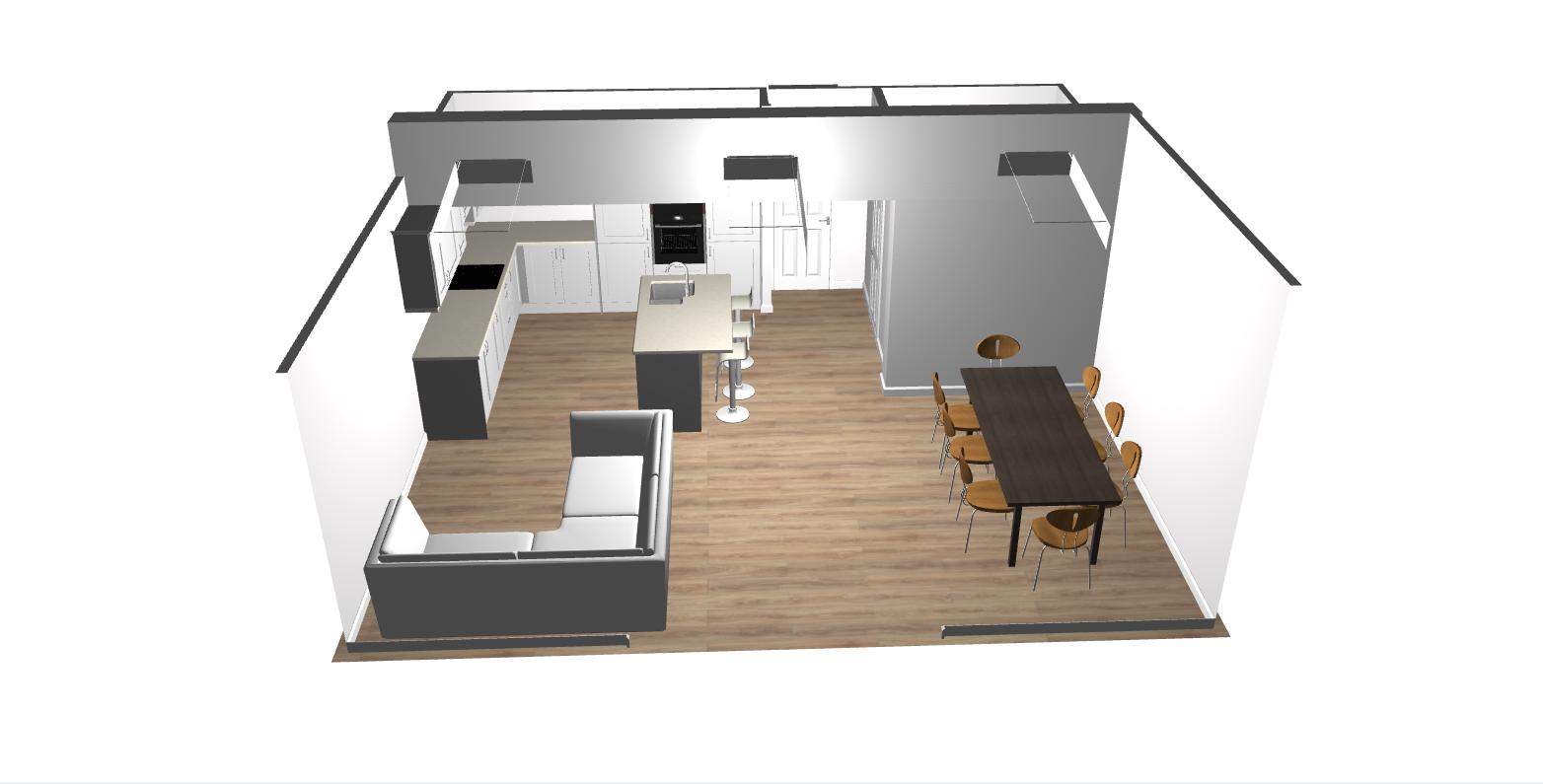 add lighting through roof lights and decoration put a television on the wall behind the sofa