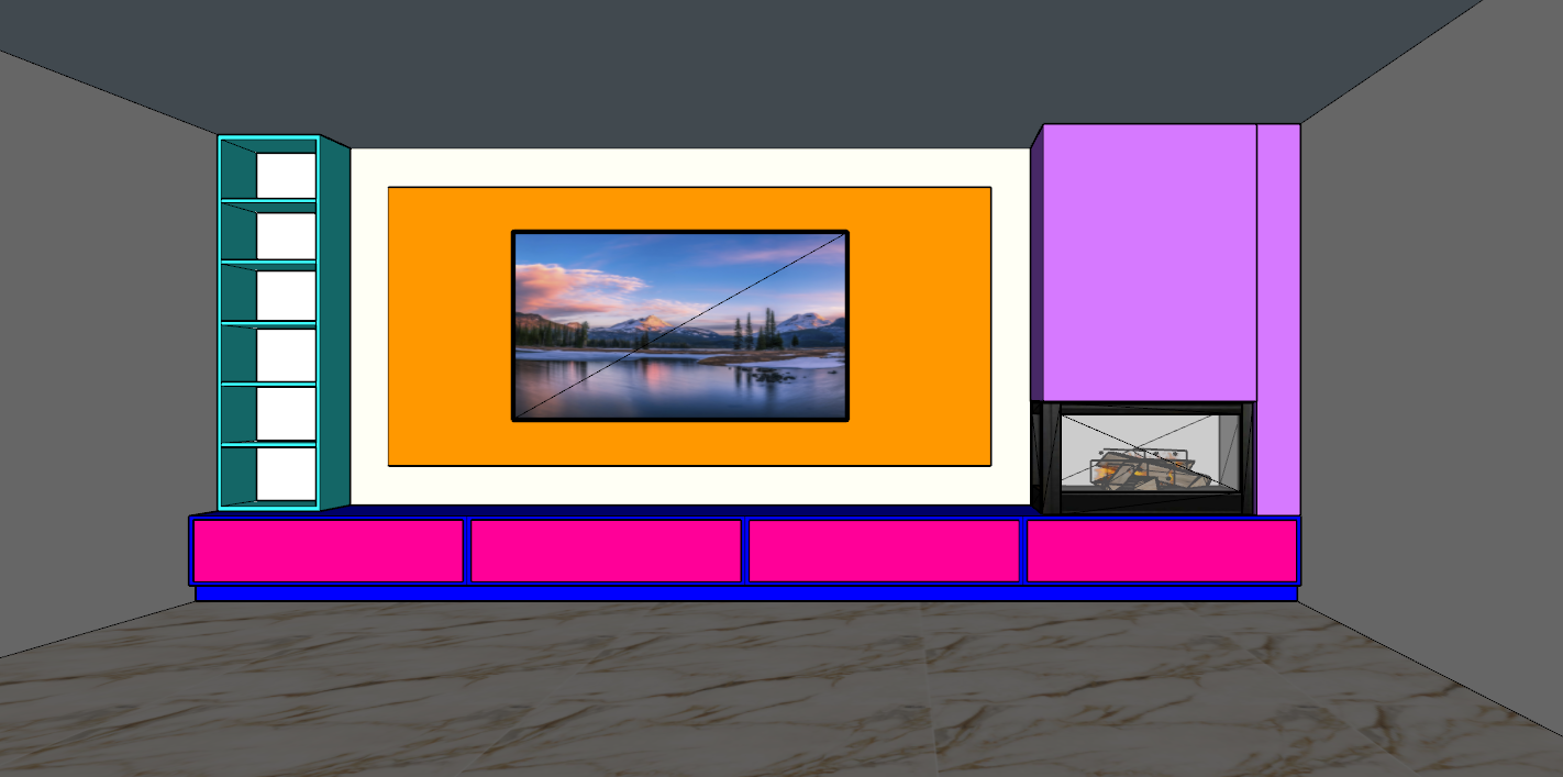 modernist interior shot render this construction with tv wall and fireplace architecture