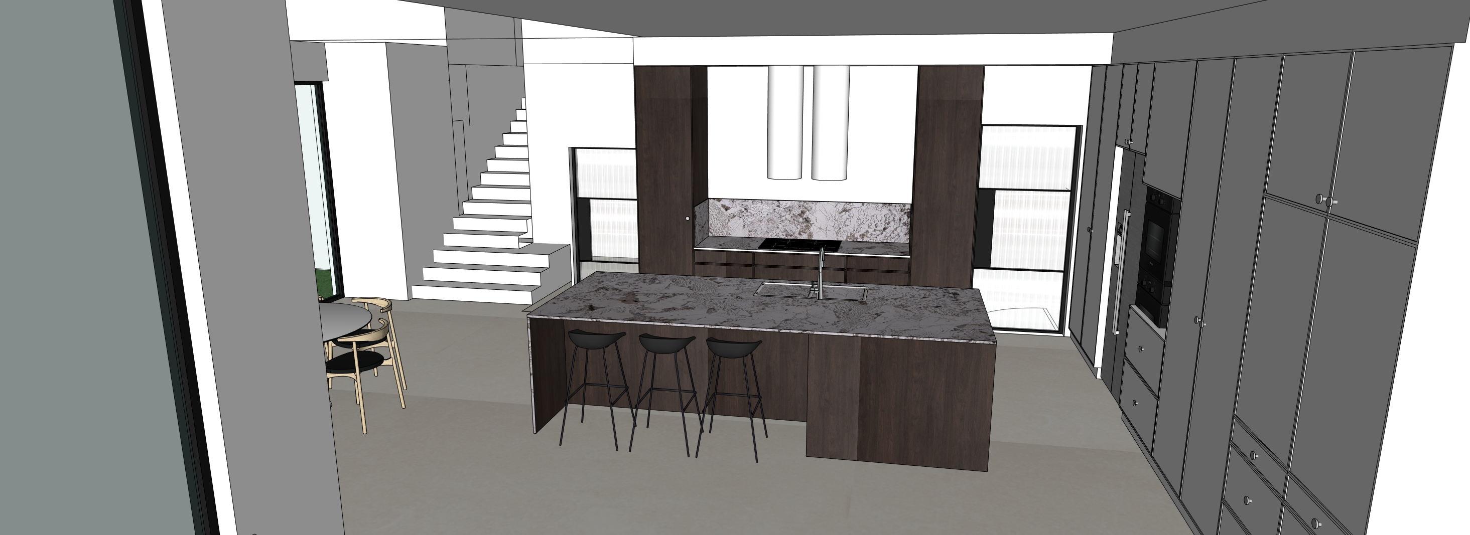 render with lots of natural light and bright interior make the timber a charcoal tone