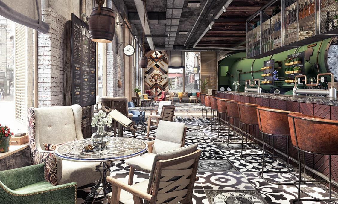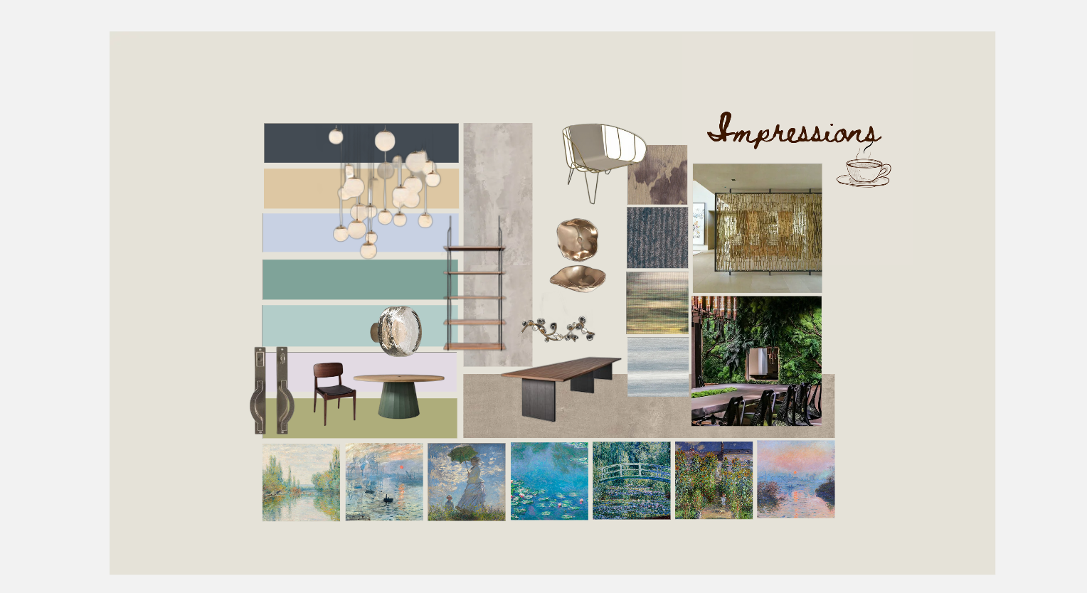interior shot modern coffee shop inspired by claude monet