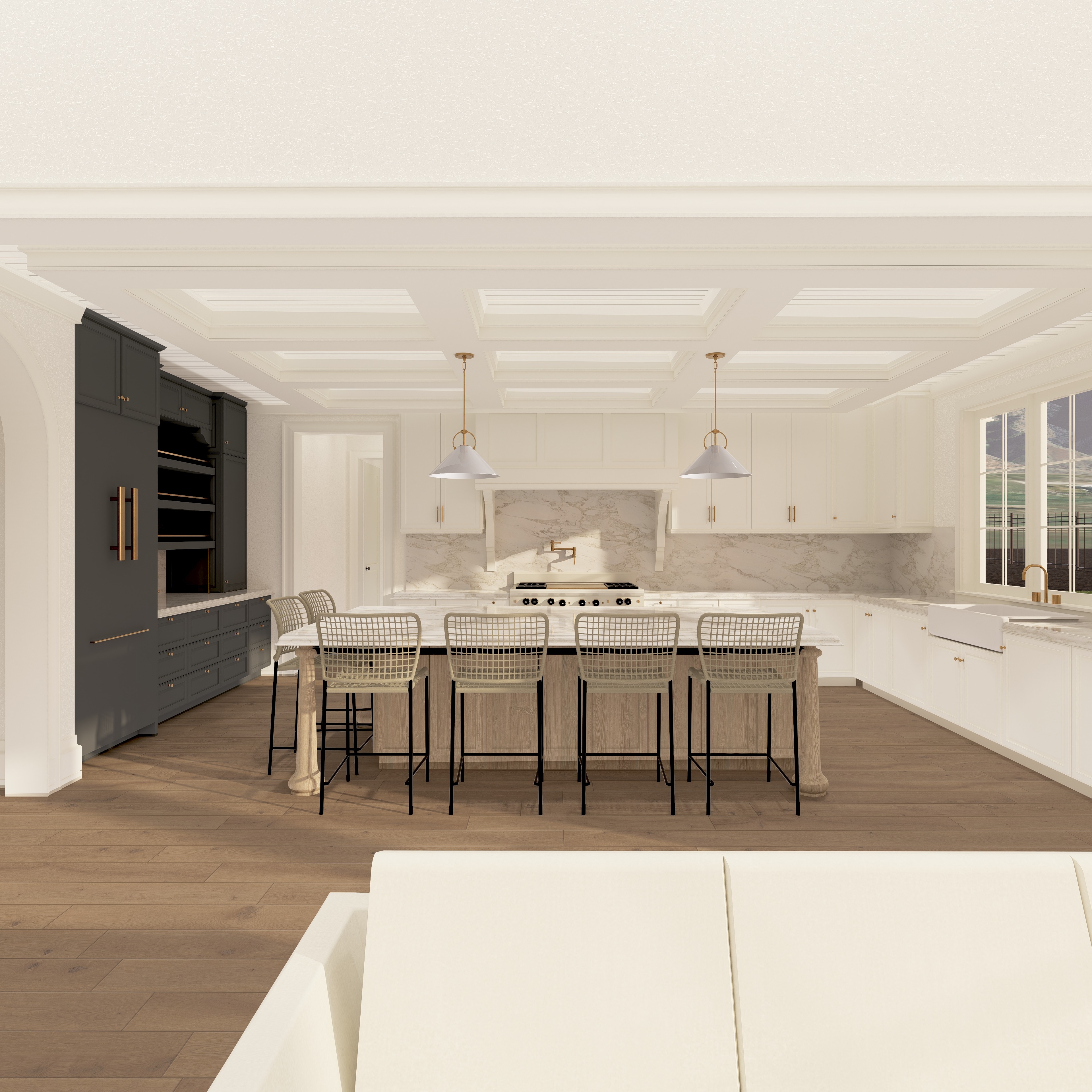 maintain colors and structure but improve both interior synthetic lighting as well as a flood of exterior natural sun light as if it were a bright sunny day kitchen style is elegant modern day cottage