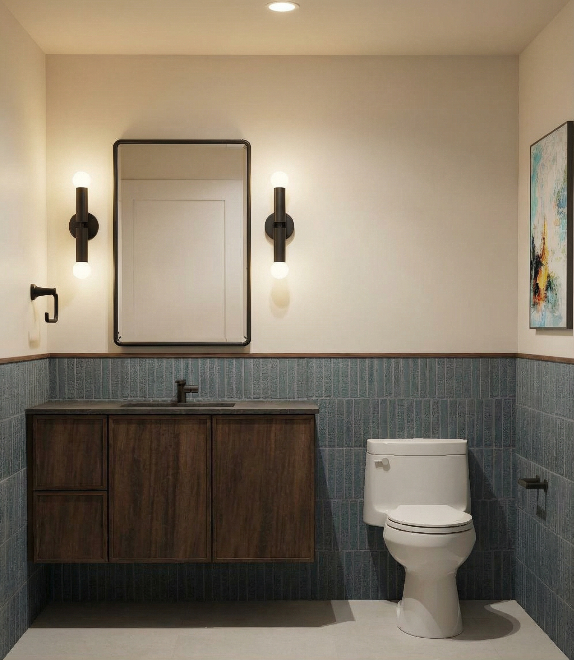 make this photo from site look like its finished i was a limestone effect porcelain floor tile on the floor cream carpet on the stairs provide half height panelling to the room and up the stairs which is to be the colour linen wash from little greene paint company the upper parts of the walls to be painted the little greene colour hopper make the hand rail and spindles the same colour as the green cladding add some gold light fitting from the ceiling and wall lights up the stairs alongside some framed artwork make it look classy