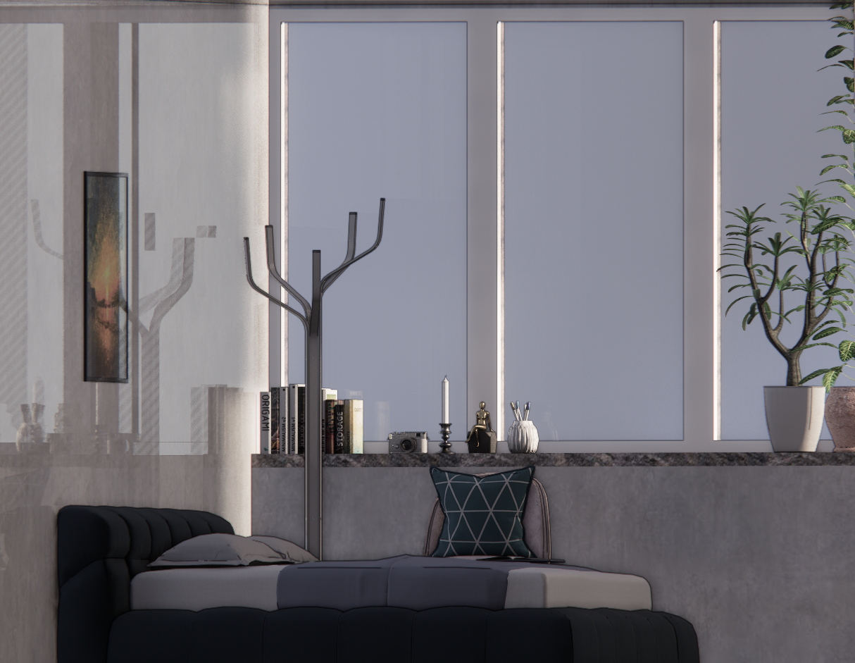 modernist perspective shot realistic ceiling and walls visible person architecture
