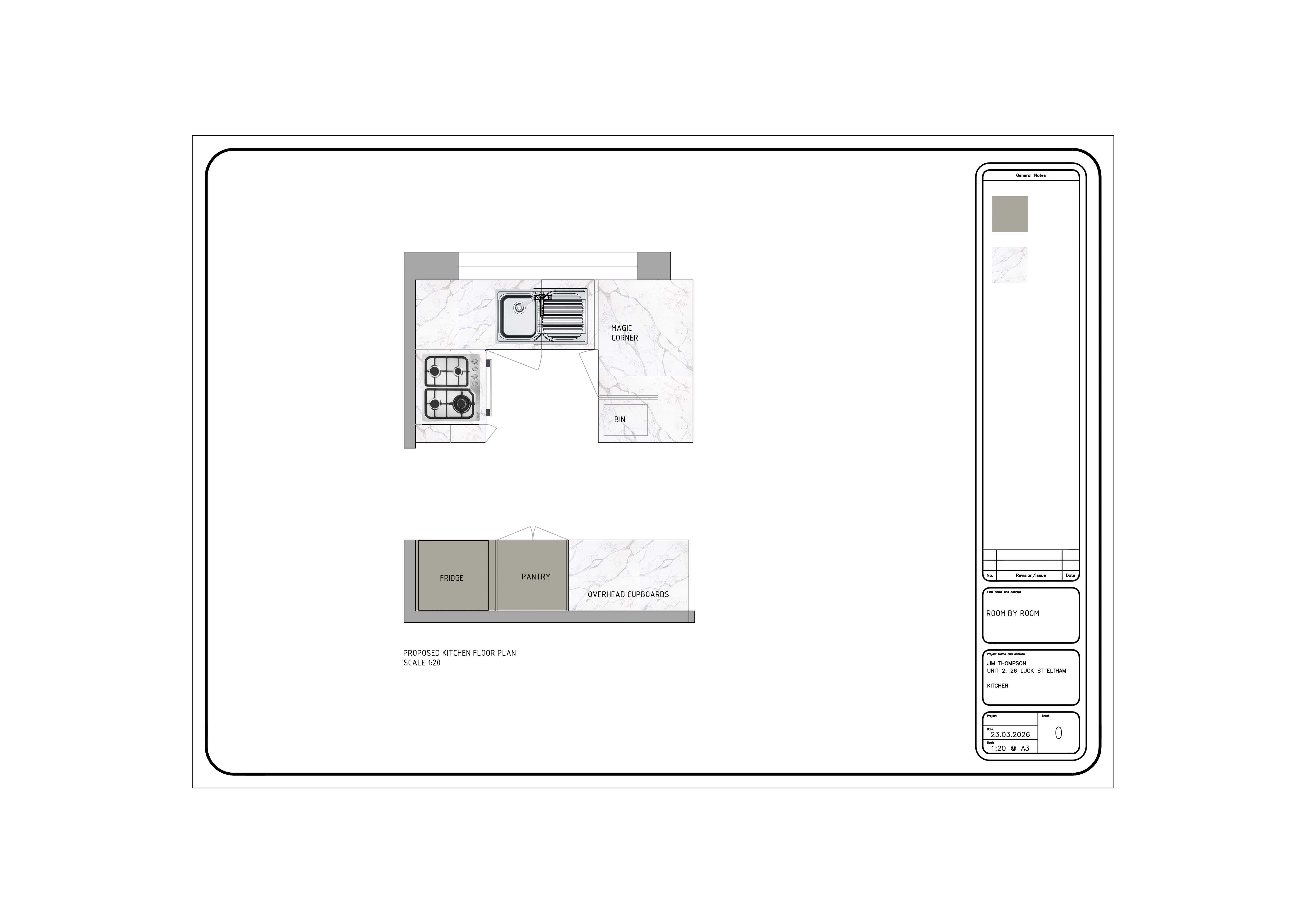 make a 3d render of the attached kitchen floor plan benchtop ydl stone blanco verona ultimate range cabinetry colour nikpol tin plate supermatt
