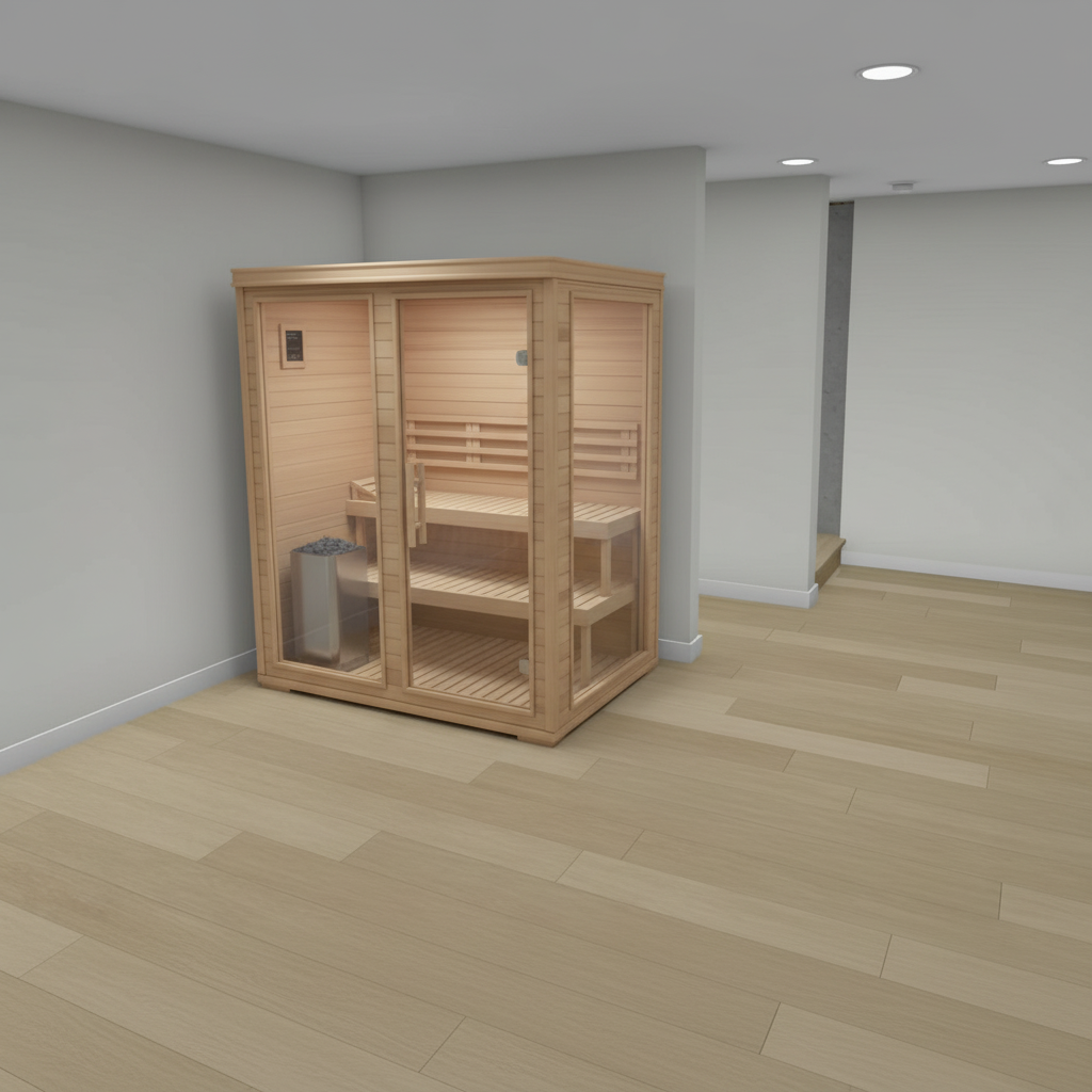render a modern minimalist room with smooth ivory walls creating a calming ambiance the polished wooden floor in warm beige and light brown tones enhances the elegant simplicity soft recessed ceiling lights cast a gentle glow promoting a serene atmosphere a subtle contrast is provided by the white trim and door adding a refined touch