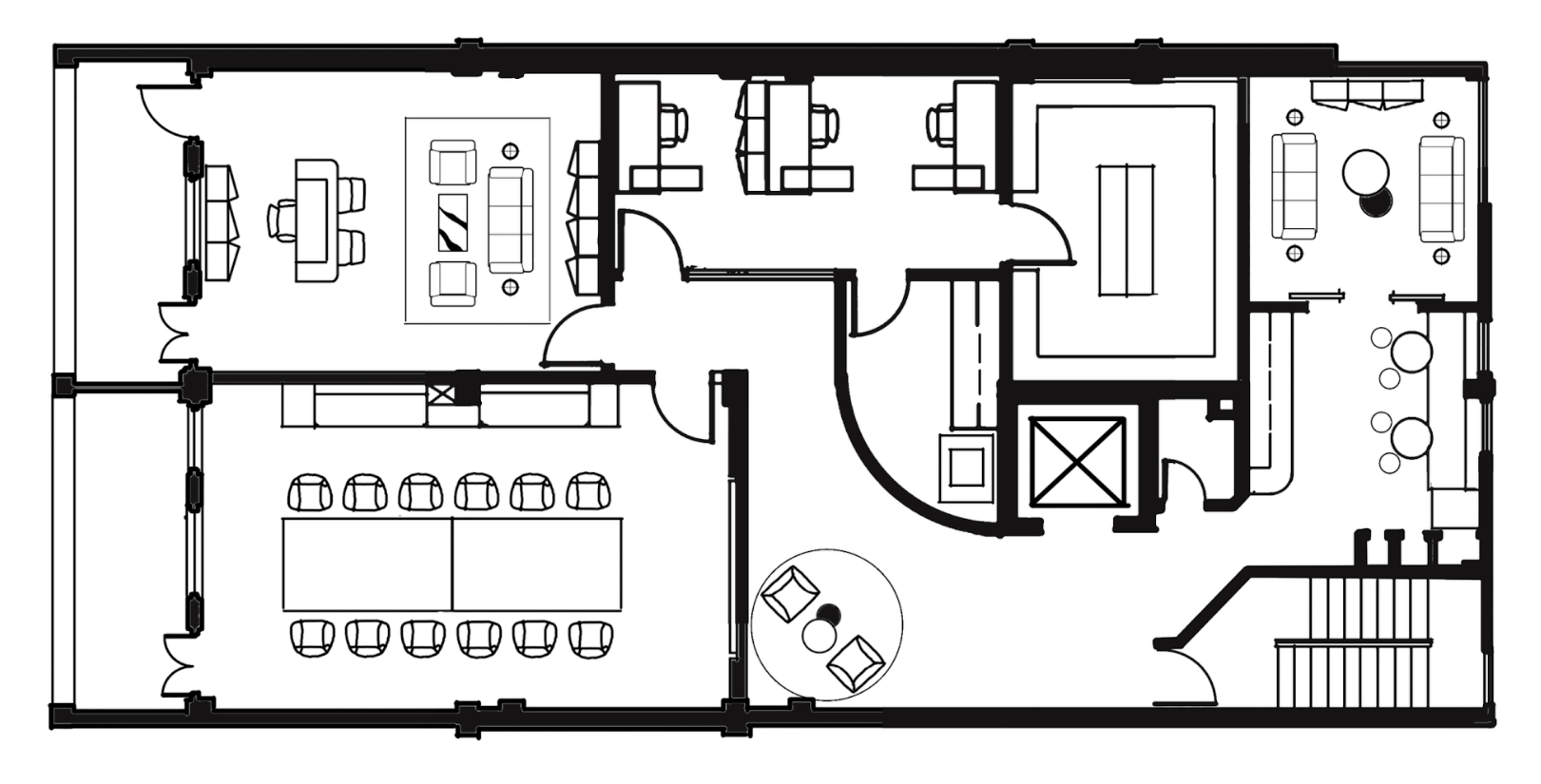 convert this floor plan into a realistic isometric 3d view of a full house show the space from an elevated angle with furniture walls and details visible hospitality neutral colors use the same furniture as shows on the plan do not change the orientation of the floorplan