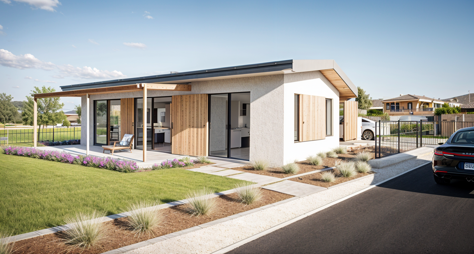 exterior shot vitrage clair menuiseries en aluminium poteaux en biques de chaque c t