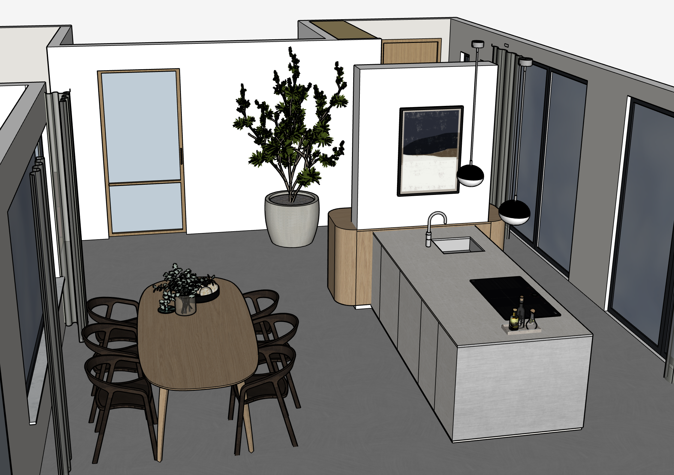 please make the ceiling white coloured the floor is grey concrete sunny weather