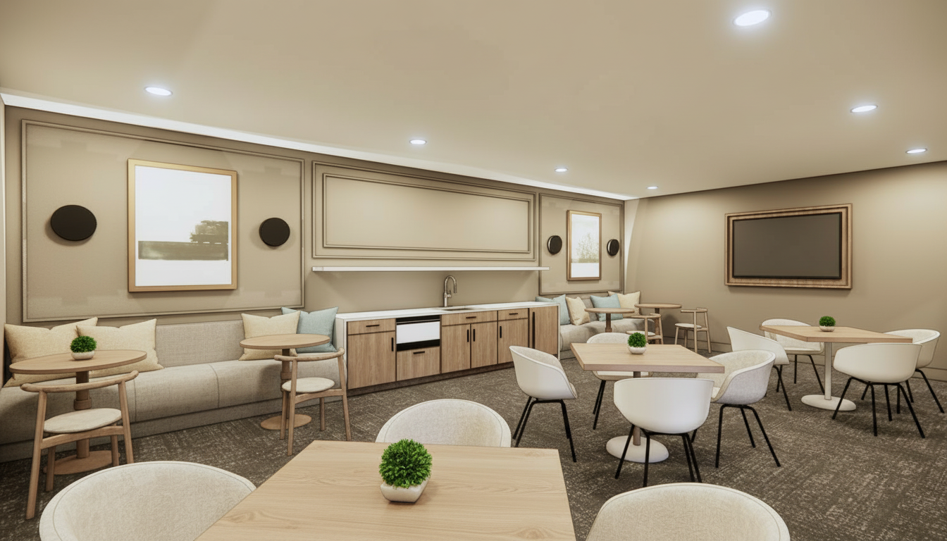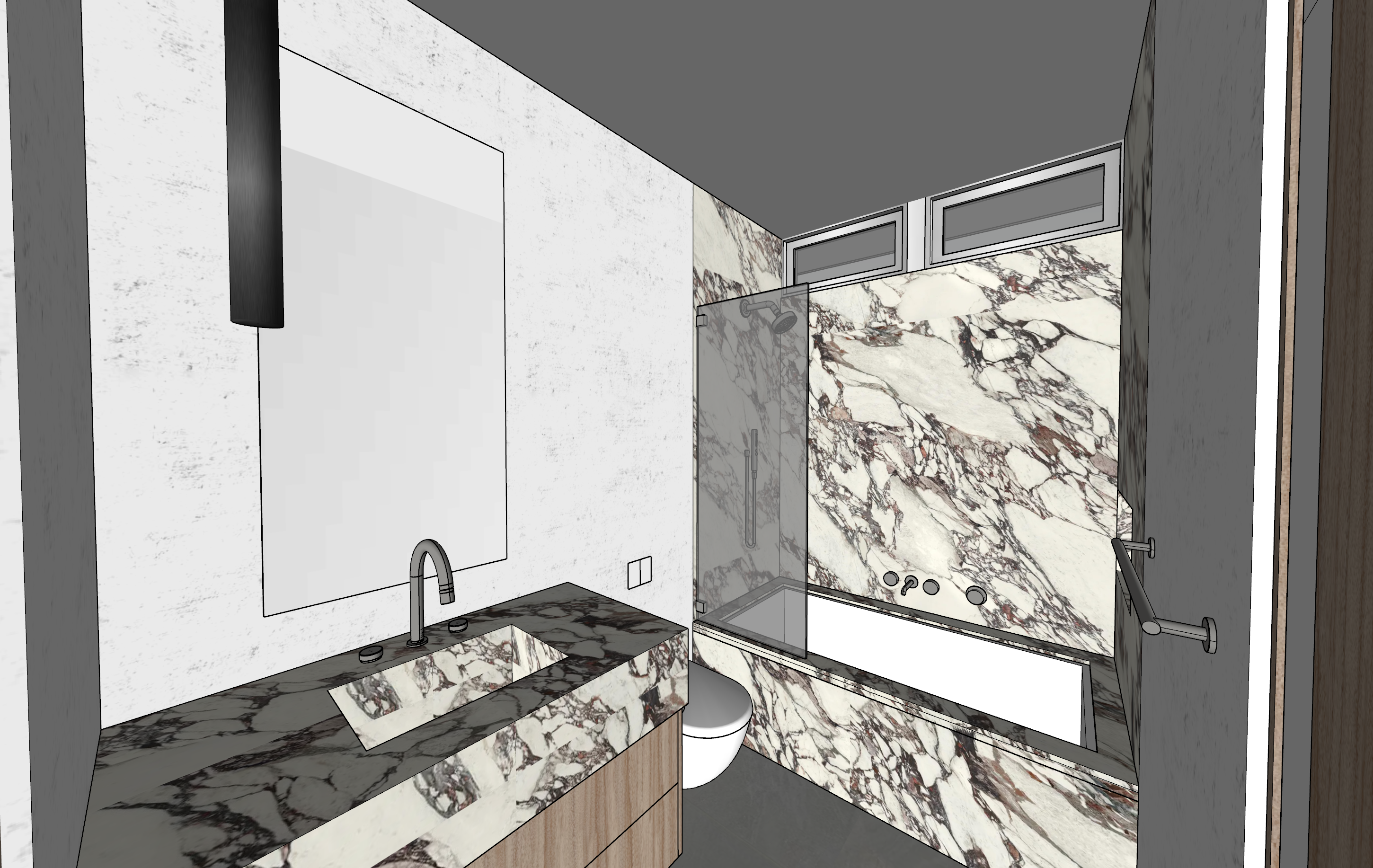 backlit mirror surrounding walls plaster floor is off white limestone natural lighting