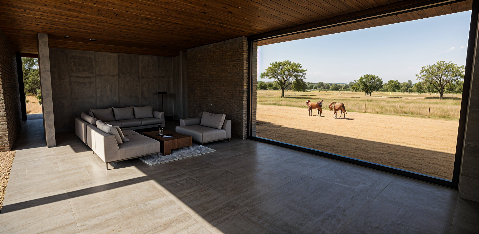 keep colors and materials as they are deco magazine quality keep plants in the window keep rattan in the stools artificial wave pool in the background