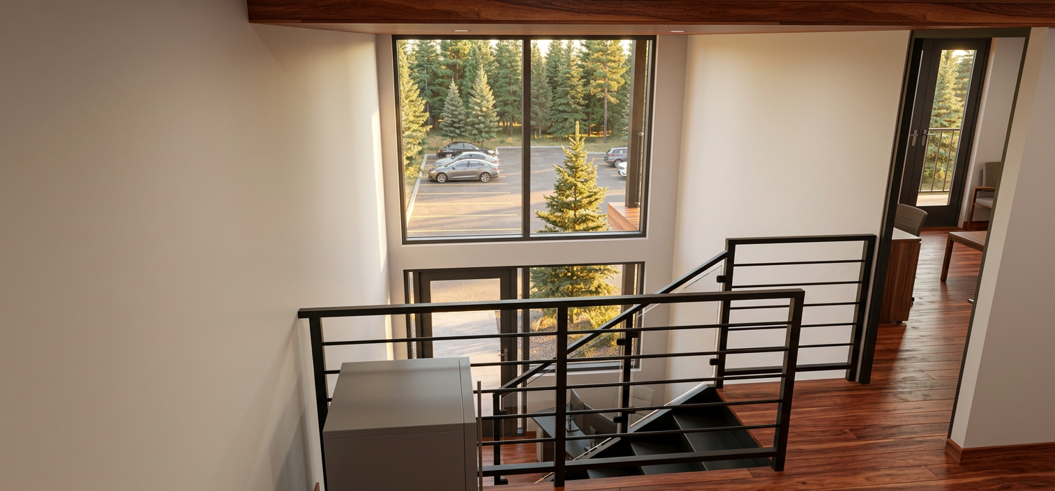 transform this archicad screenshot showing a back entertaining deck and pool area show a driveway on the right hand side of the image the house has white cladding