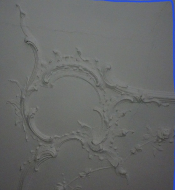 ultra sharp high definition reproduction of a rococo baroque plaster ceiling ornament straight on orthographic view without perspective distortion clean symmetrical scrollwork with curved flourishes acanthus leaves and small floral details matching the original shapes exactly smooth matte plaster texture in monochrome grey extremely crisp edges and fine linework no noise no blur even diffuse lighting no shadows no highlights perfect clarity for tracing no artistic interpretation no added elements negative prompt distortion warped shapes altered proportions perspective angle fisheye asymmetry blur grain shadows stylized look extra ornaments missing parts low detail color tint texture overemphasis